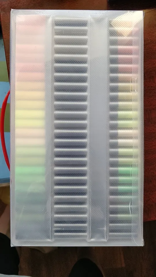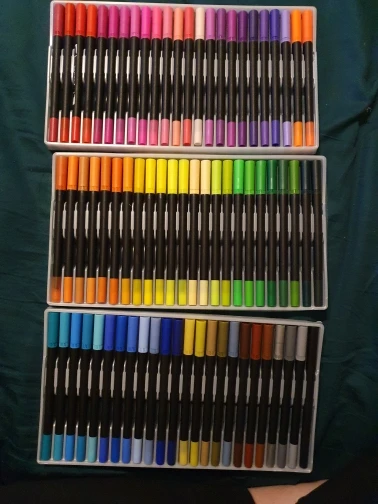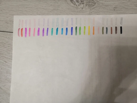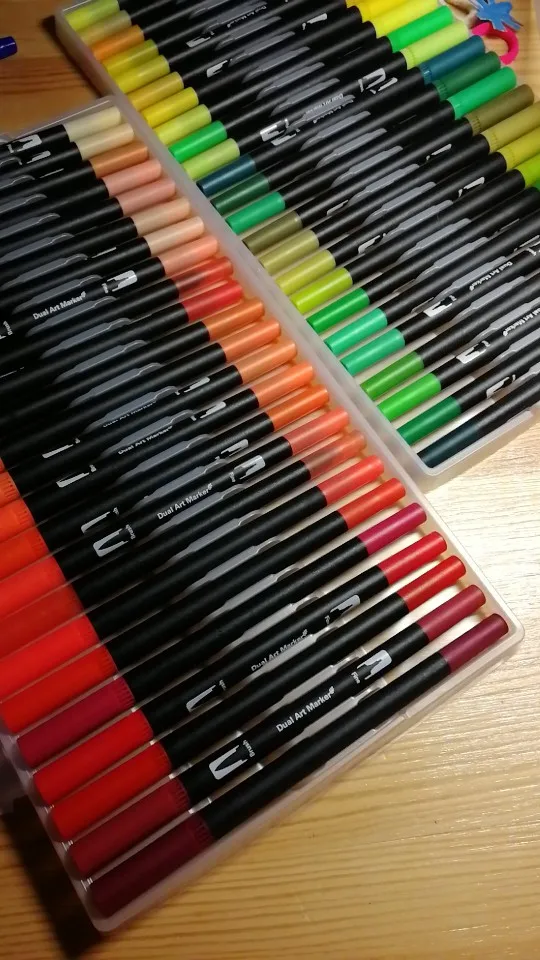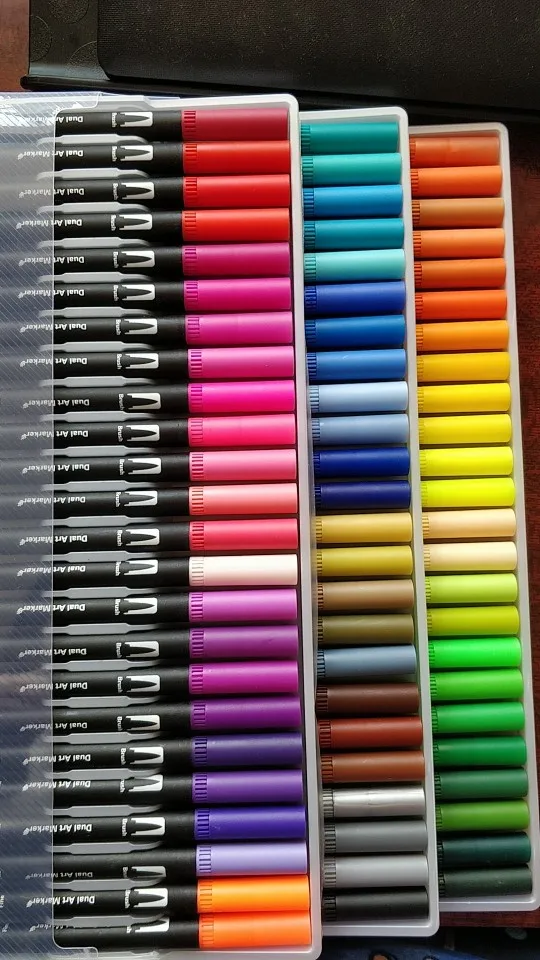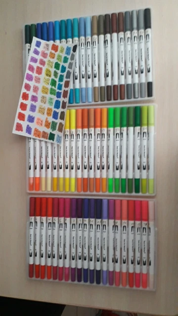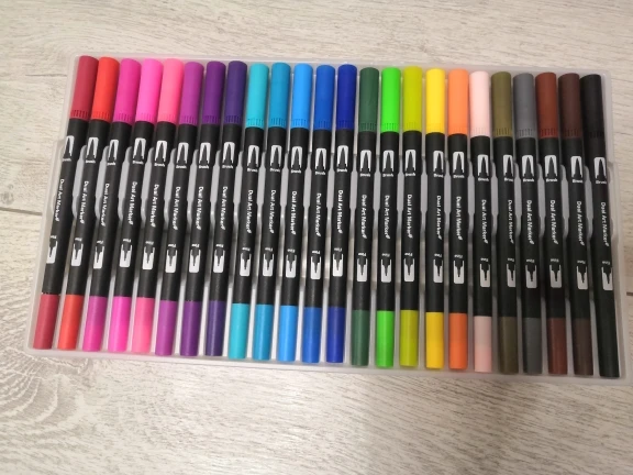 Хорошие фломастеры, соответствуют описанию. Приехали очень быстро с курьером по адресу. Все пишут. Так выглядит мой набор из 48 цветов