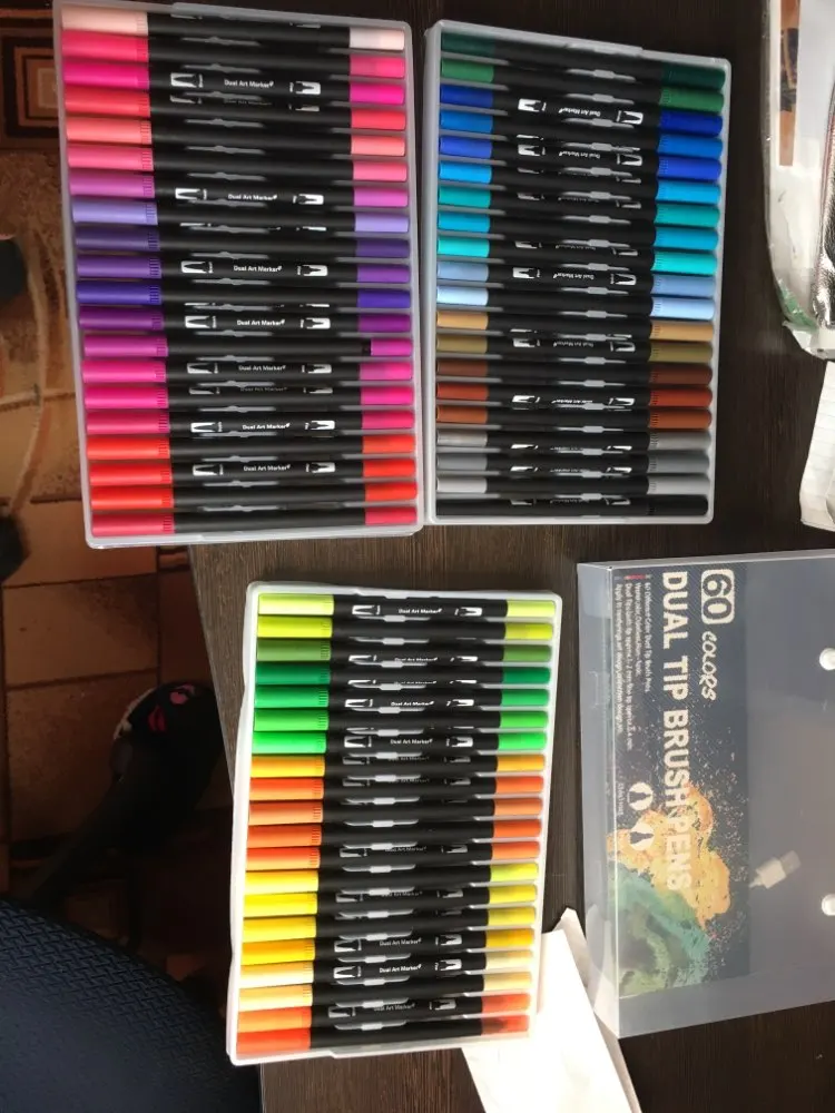 Мне очень понравилось разнообразие цветов, очень красиво, когда они рисуют то, что мне не очень нравится, так это то, что у некоторых есть самый жесткий наконечник, а у других более мягкий наконечник, и вы должны контролировать больше, когда дело доходит до высыхания. Он прибыл быстро до 10 дней