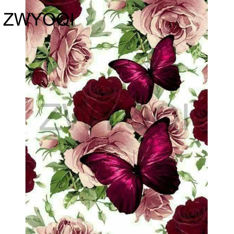 Полная квадратная Алмазная Вышивка Роза бабочка Полный Круглый Бриллиантовая мозаика Роза бабочка 5ddiy Алмазная вышивка крестиком на рисунке, пион