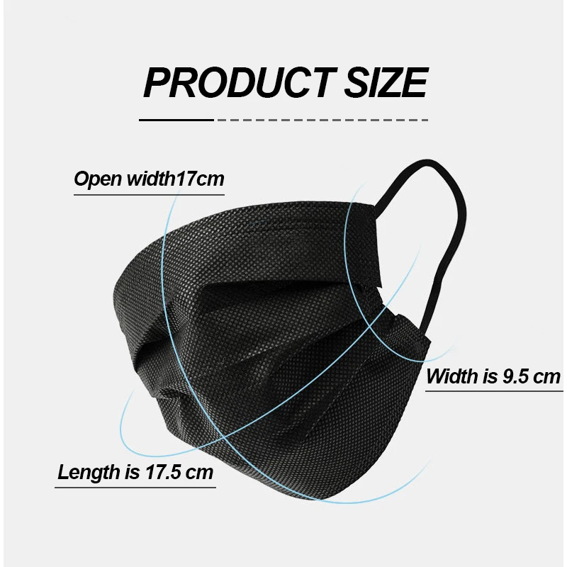 Одноразовая черная маска для лица, 3-слойная защитная дышащая маска...