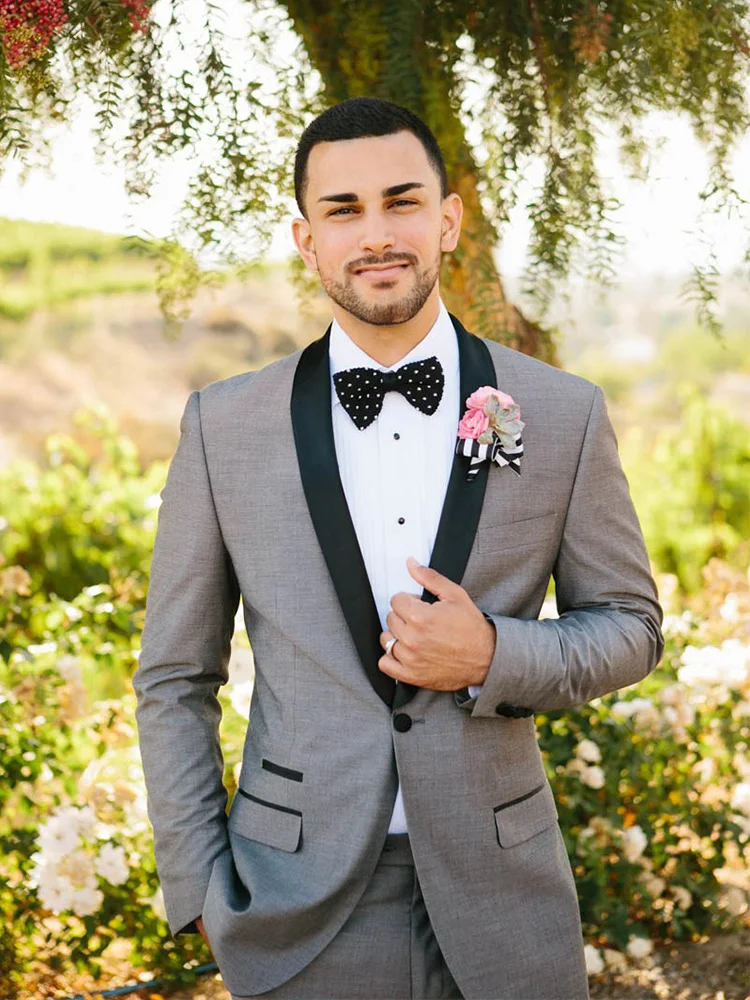 ANNIEBRITNEY Grey 2 Piece Skinny Fit Tuxedo Groom Suits