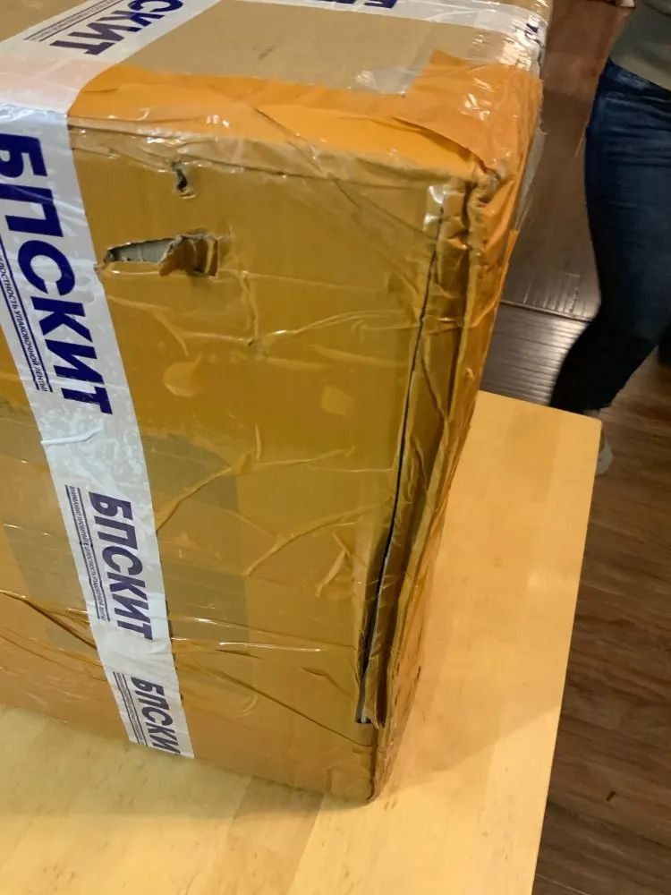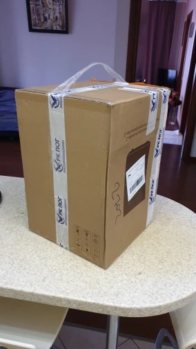 Коробка пришла вся мятая и побитая. Сам увлажнитель не пострадал. Увлажнитель отличный, пользуюсь подобный 3 месяца, сейчас взял на подарок теще))