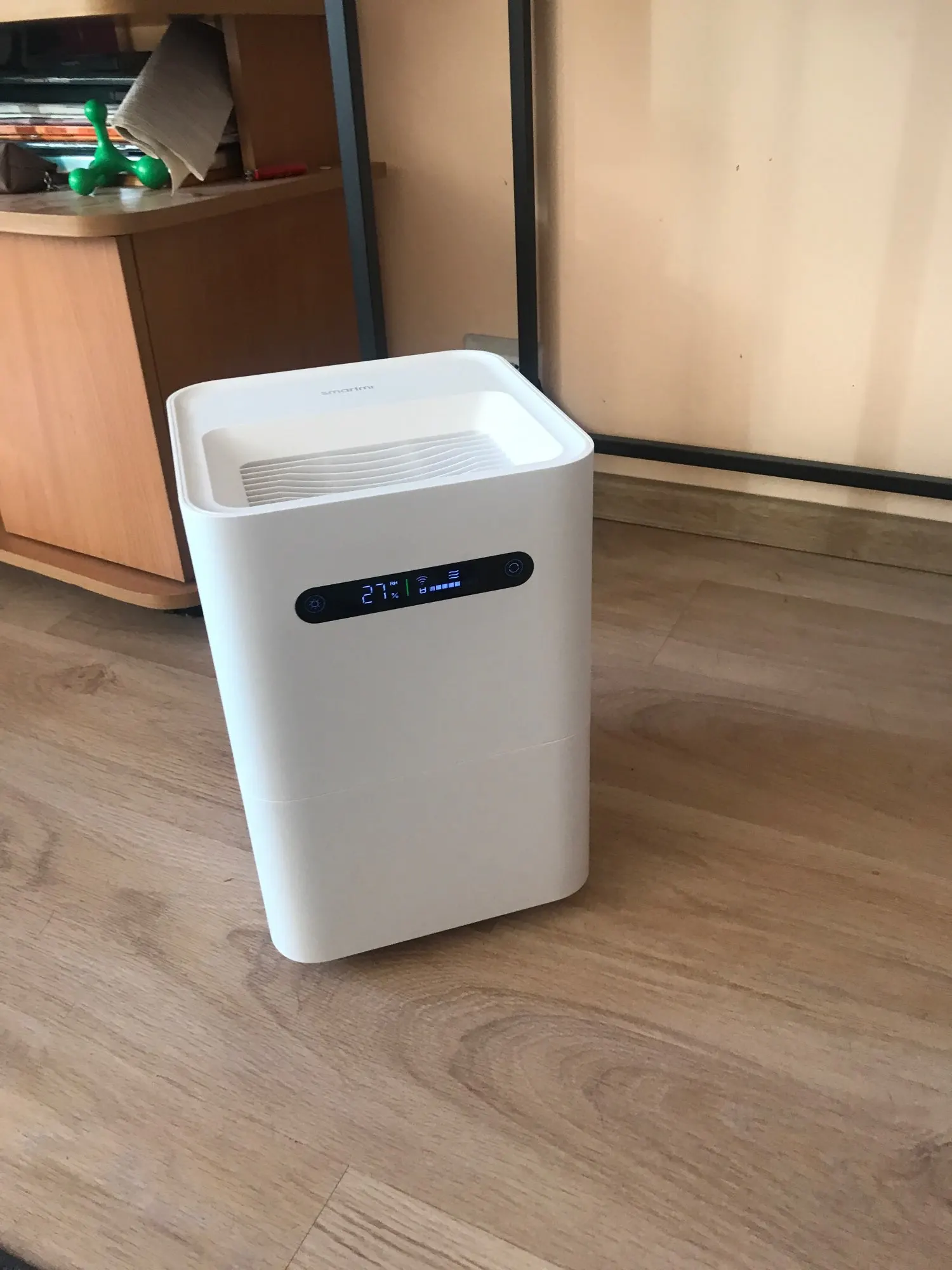 Получил в 6-й день со склада PL. Я действительно впечатлен этим увлажнителем SMARTMI 2. Три разных уровня мощности, низкий уровень шума, уровень воды, сцены автоматизации. У меня также есть датчик температуры Mi и дификации hu mi, который показывает более надежное значение для комнаты. Я думаю, что значение на SMARTMI зависит от приближения резервуара для воды (разница в 5 процентных точек). Сюрприз-это потребление энергии: наивысший уровень работы приводит к 0,0065 кВт · ч (уровень один ниже 3 Вт · ч).