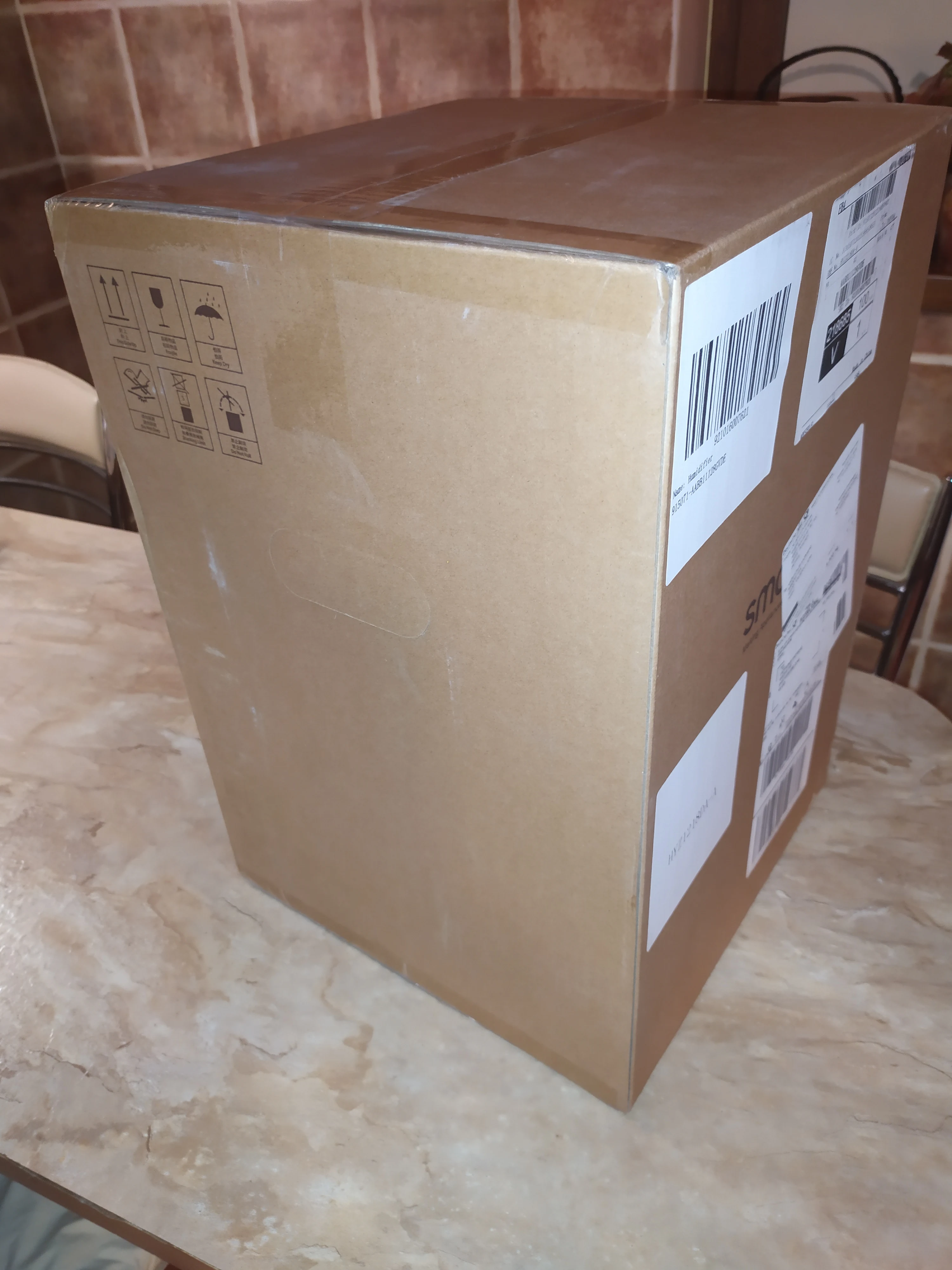 упаковка была помята, заклеена и переклеена, даже сквозная дыра в картоне, но аппарат без царапин и все работает исправно. Брал глобальную версию, подключился без проблем. доставка с 22.02 до 24.02. Спасибо.
