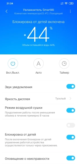 увлажнитель супер, работает как надо в нашей комнате 20кв.м поднимал влажность с 35 до 55-60% ни с китайским, ни с российским регионом не заработал, устройство перестало поддерживаться ещё до обновления с прошивки. но если несколько раз подряд зайти в устройство иногда пропускает и есть возможность настроить автоматизацию. с Алисой увлажнитель подружился быстро даже не смотря на то, что в михом в моем регионе не поддерживается, и Алиса не потеряла связь с устройством даже когда я перенастраивать региону. так, что я управляю устройством через Алису, ради этого и брал