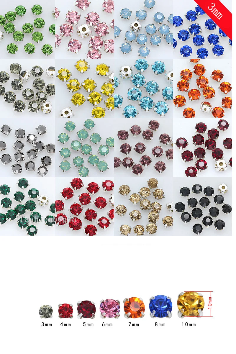 100p 3 мм цветные стразы из хрустального стекла, бриллианты, серебряная чашка, монтики с когтями, 4 отверстия, камень для пришивания бусин, одежда для рукоделия