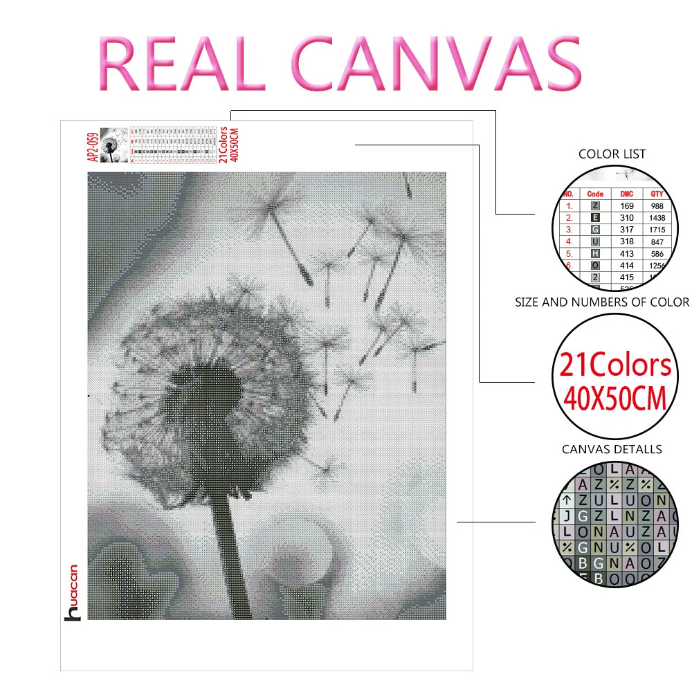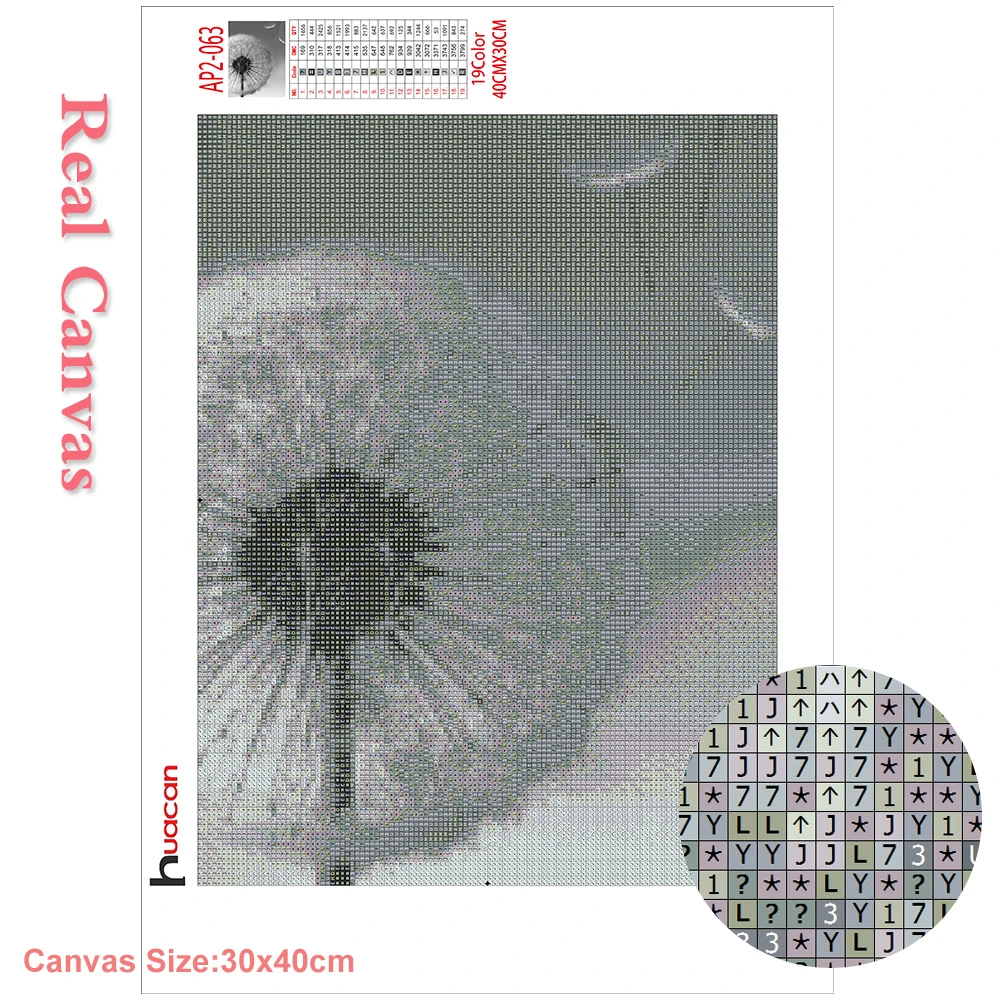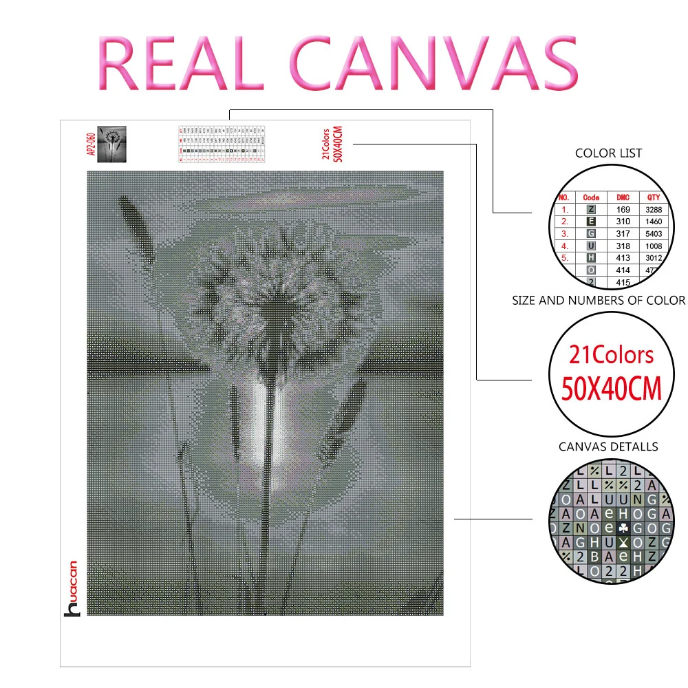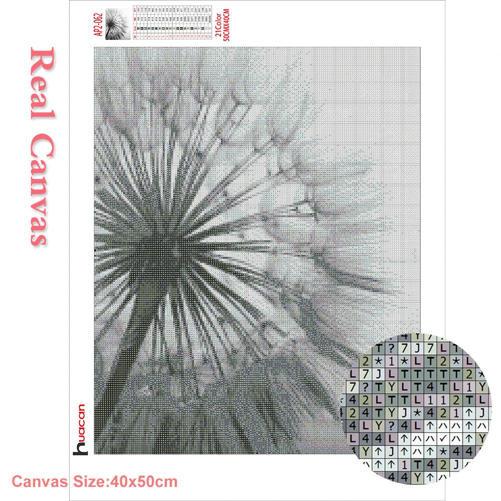 Huacan алмазная вышивка цветы картины из страз мозаика Черный и белый одуванчик декор для дома