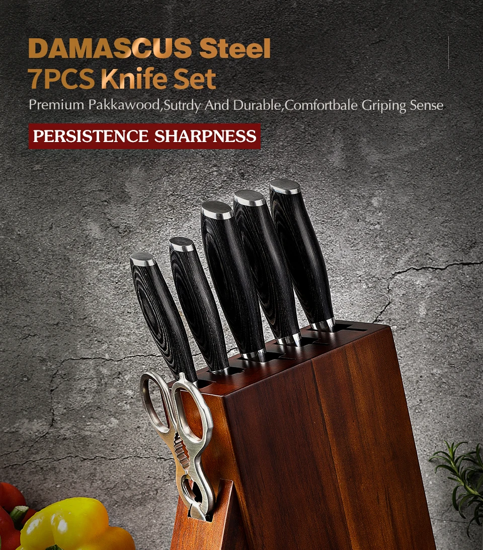 Набор кухонных ножей XINZUO, 7 шт., с деревянной ручкой из акации, держатель кухонных ножей, Дамасские стальные ножи, Pakkawood Handle Pro Chef's Gift