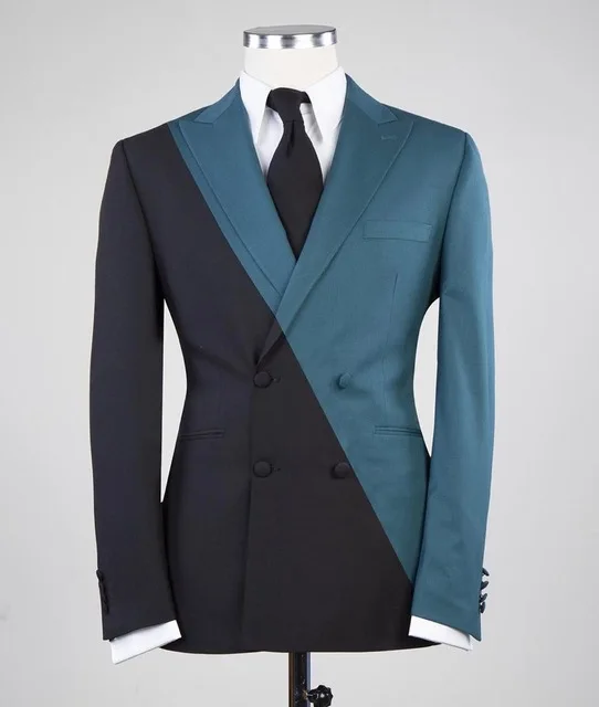 Мужские вечерние костюмы с контрастным дизайном, облегающие брючные костюмы, двубортный костюм для выпускного вечера, пиджак + брюки, 2020