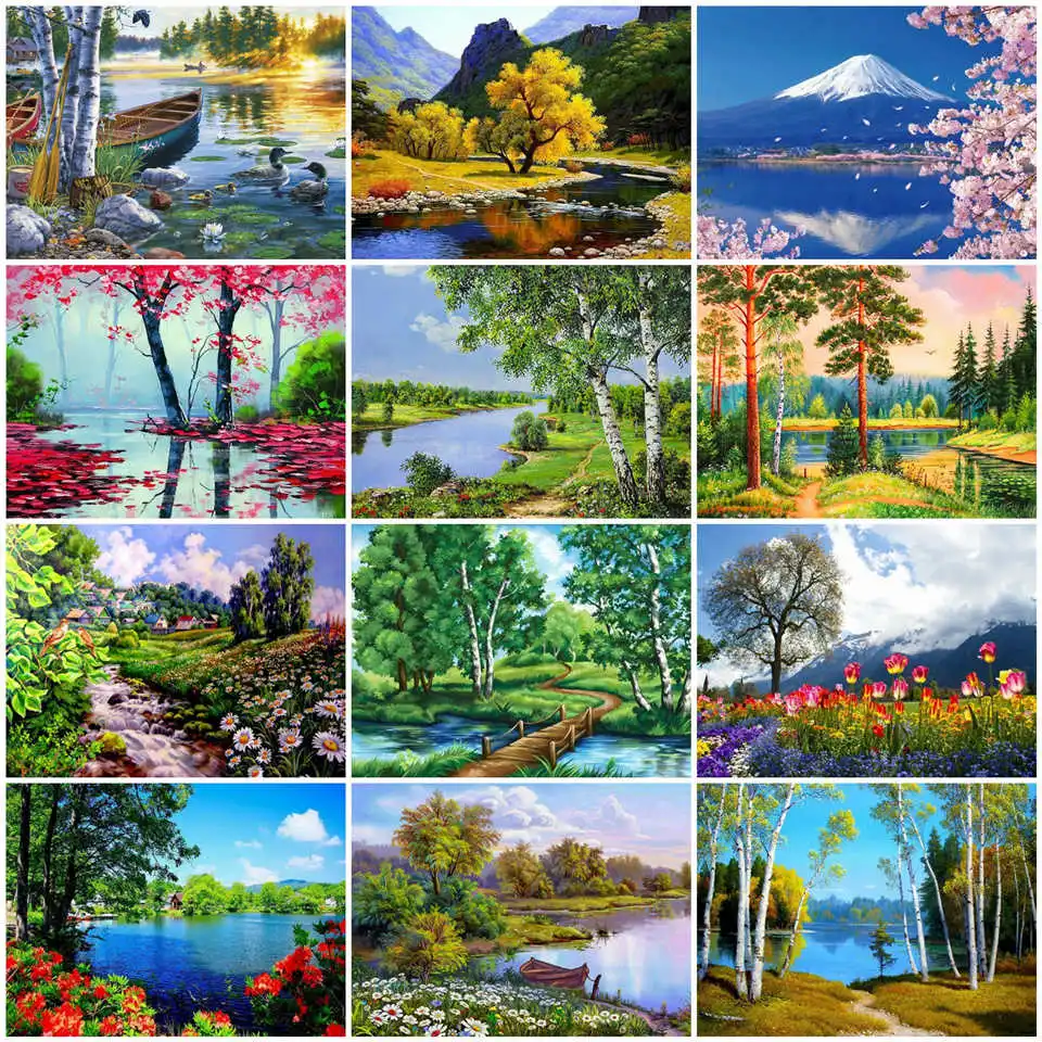 AZQSD Безрамная картина по номерам природа пейзаж Раскраска по номерам дерево Сделай Сам для украшения дома подарок 50x40cm