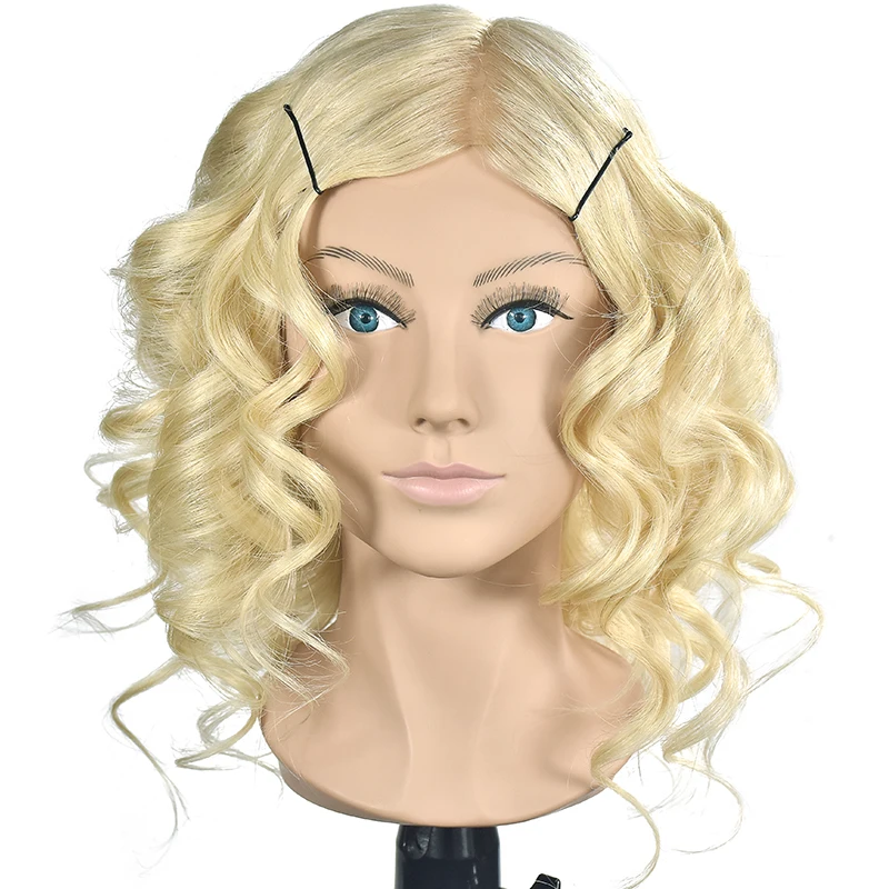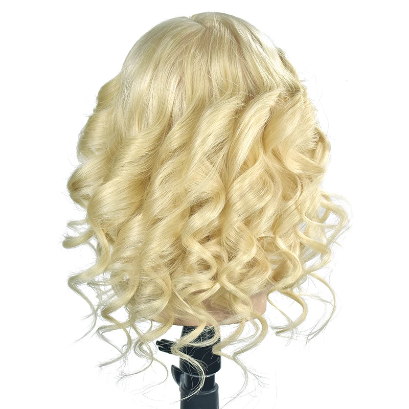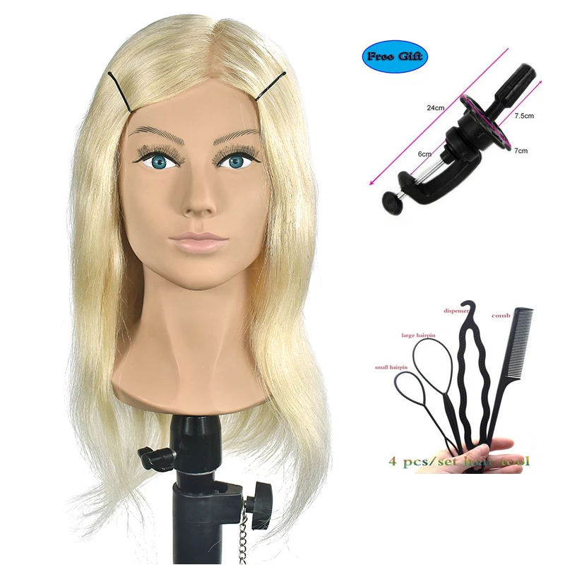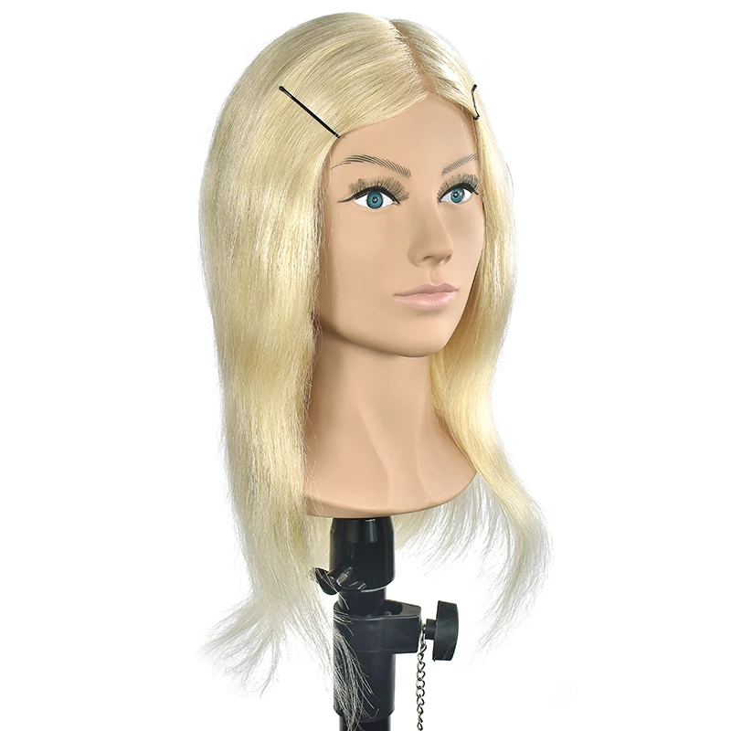 16 "тренировочная голова с плечевым ремнем, 100% настоящие волосы, манекен для парикмахерских волос, манекен с длинными светлыми волосами