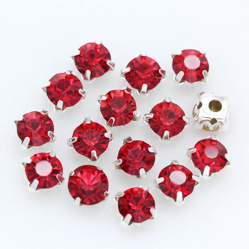 3/4/5/6/7/8/10 мм Siam круглые стразы с плоской спинкой и когтями, Пришивные кристаллы, Стразы для одежды, поделки, свадебное платье, отделка