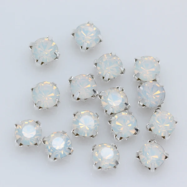 100 шт. 4 мм Пришивные опаловые Кристаллы Стразы с плоской задней стороной, украшение «сделай сам», серебряная чашка, коготь, 4 отверстия, швейные бусины, одежда для рукоделия
