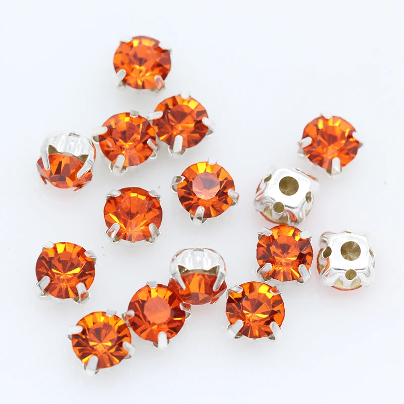 3/4/5/6/7/8/10 мм оранжевые Кристальные круглые стразы с плоской спинкой и когтями, пришивные камни со стразами для одежды, отделка свадебного платья