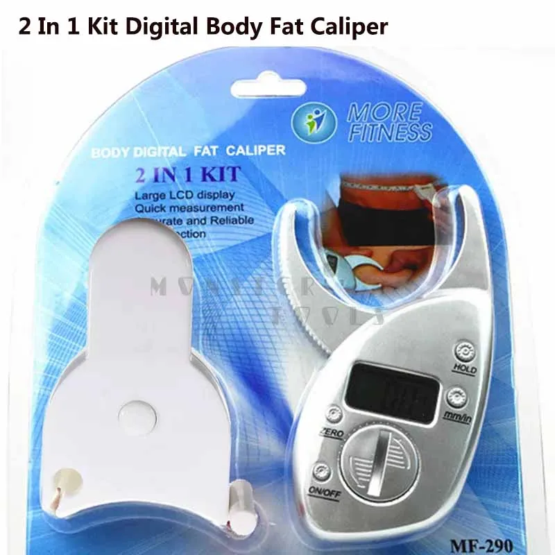 Комплект 2 в 1, цифровой штангенциркуль и измерительная лента для тела, цифровой анализатор жира в организме + рулетка в упаковке, мышечный тестер для кожи