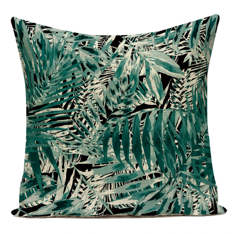 Декоративный чехол для диванных подушек, наволочка с зелеными тропи...