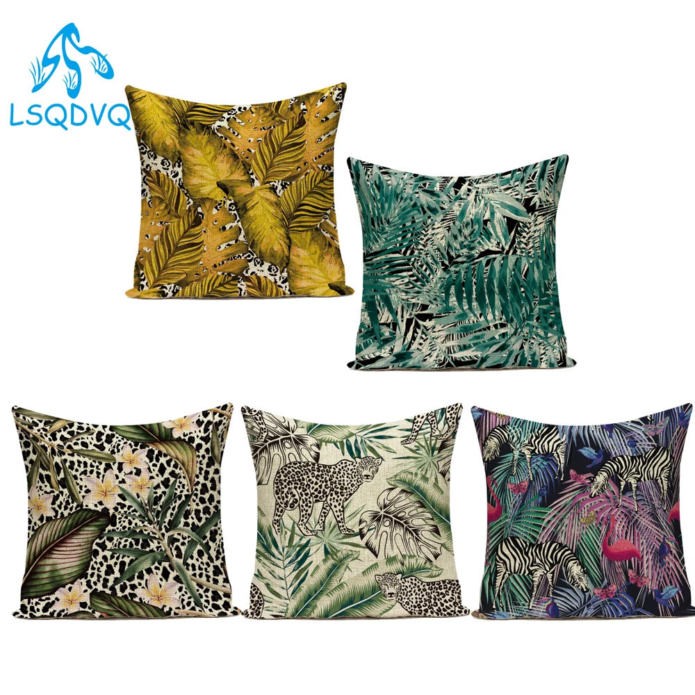 Декоративные подушки из полиэстера, тропические зеленые растения, л...