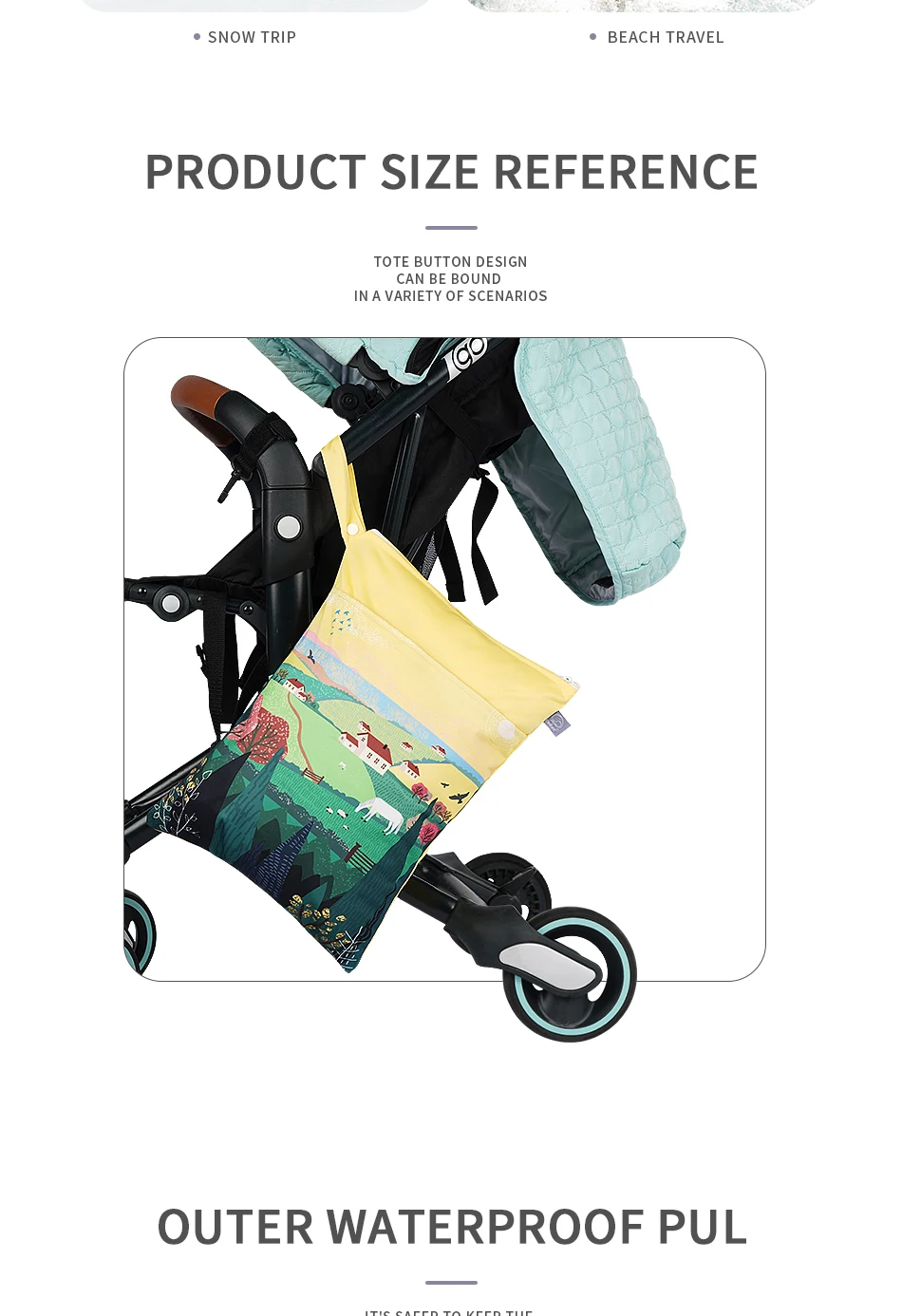 Elinfant # story of seasons # мокрая сумка, модная, с цифровыми принтами, сумка для сухих подгузников, с двойными карманами, тканевая ручка, водно-болотные мешки 30*40 см, оптовая продажа