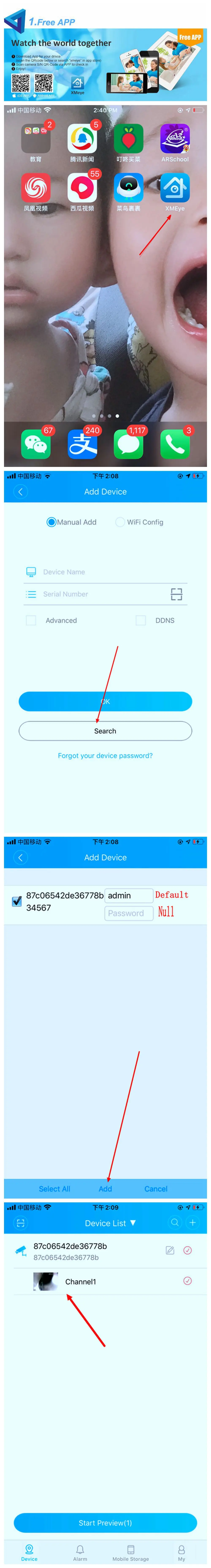 2, веб-сайт P2P: «www.xmeye.net», пожалуйста, используйте IE и установите ActiveX, только IE поддерживает несколько языков. Chrome,Safari просто поддерживает китайский. Затем введите свой идентификатор P2P, имя пользователя и пароль для входа и предварительного просмотра. Доступ к IPC через Интернет, может отображаться только один экран. Есть несколько IPC, пожалуйста, используйте клиентское программное обеспечение для управления (например: CMS VMS SNVR)