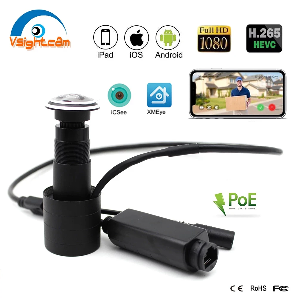 1080P HD дверь отверстие для глаз IP камера 1,78 мм широкоугольный Рыбий глаз объектив H.265 безопасности P2P камера POE внутри помещений камера XMEye iCSee