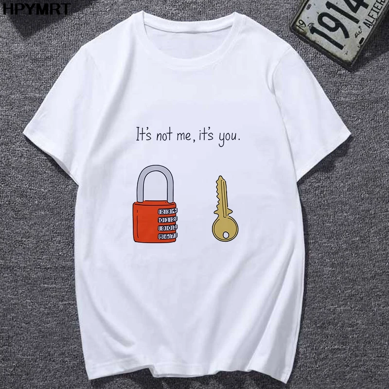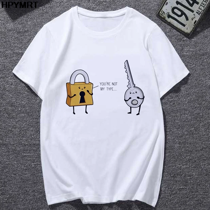 Женская футболка с принтом замок и ключ, футболки с коротким рукавом, топы с графическим принтом, одежда, Новинка лета 2020, футболка в стиле Харадзюку