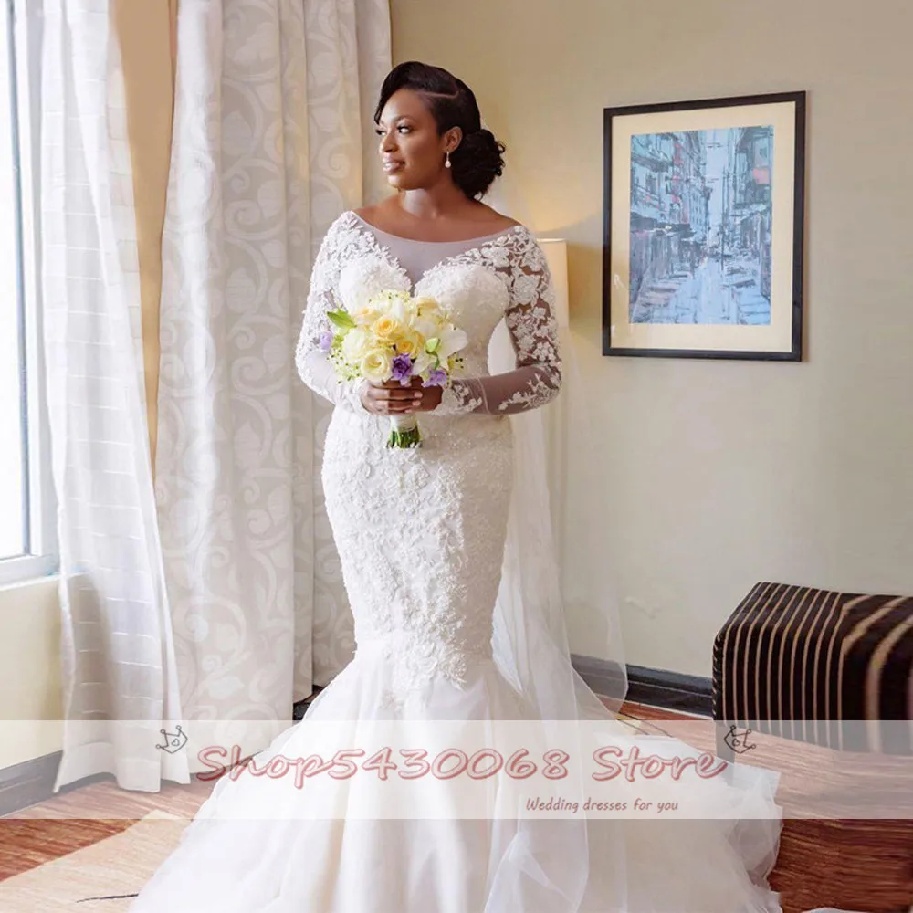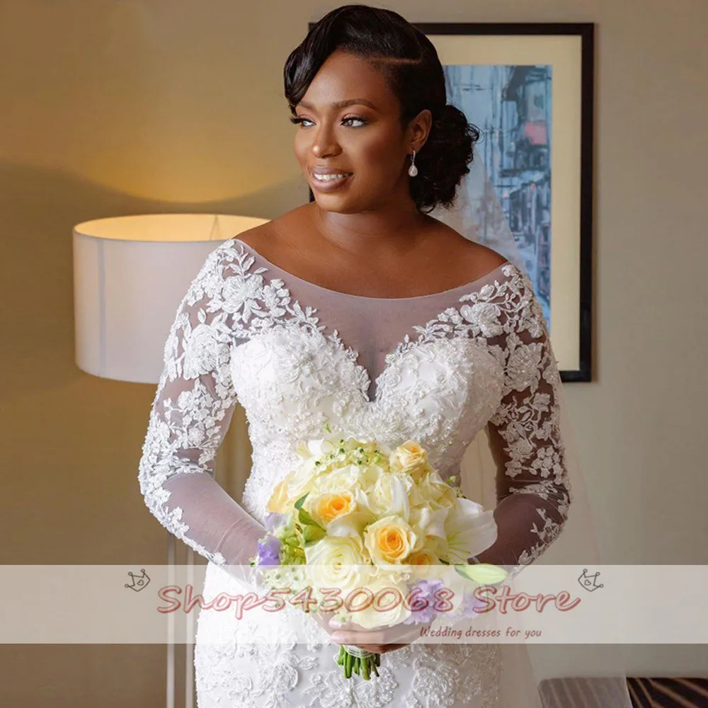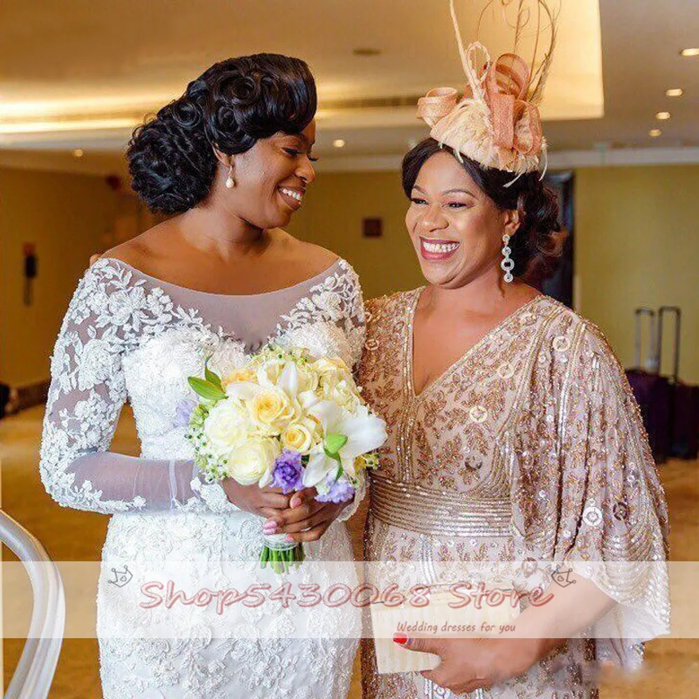 Винтажное свадебное платье с глубоким круглым вырезом и рукавами, свадебные платья 2020, африканские кружевные свадебные платья с аппликацией и жемчугом, женское платье