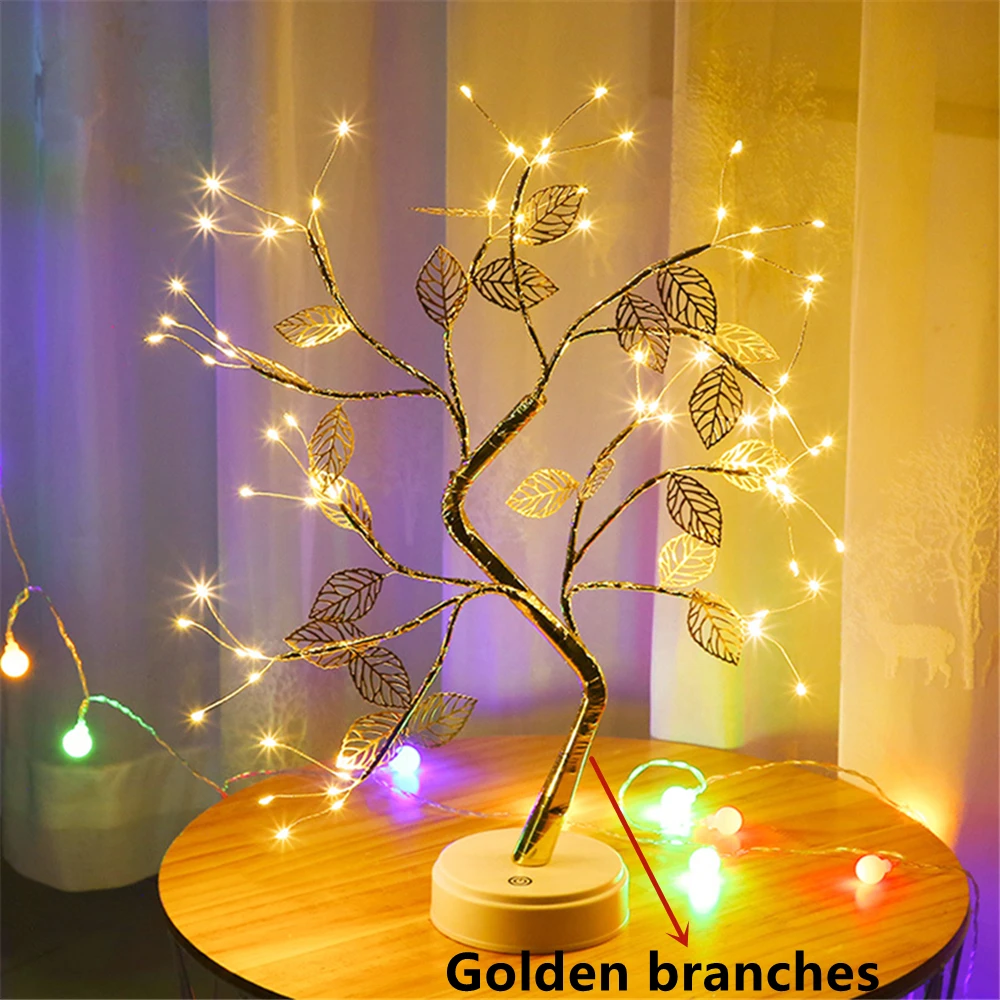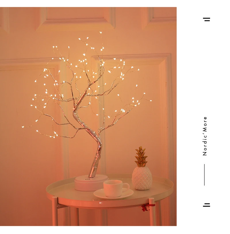 Светодиодный медный провод ночсветильник дерево Сказочный свет s украшение дома ночник для спальни прикроватная Настольная лампа с USB и батарейным питанием