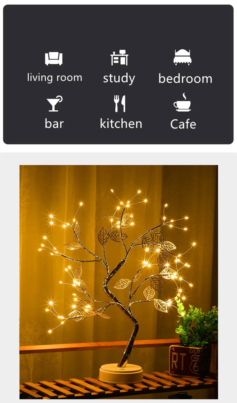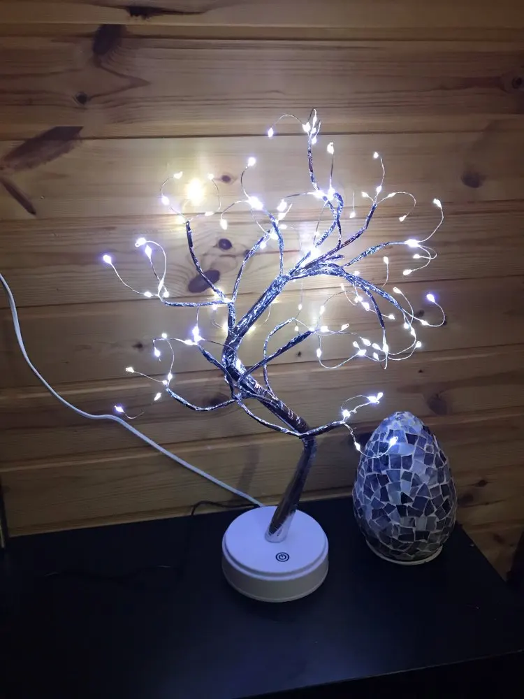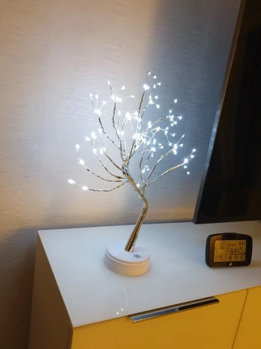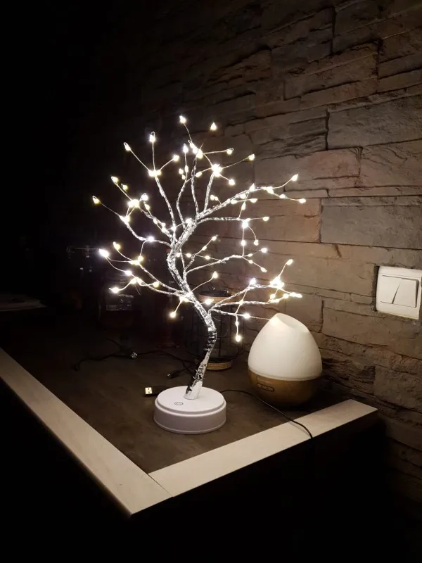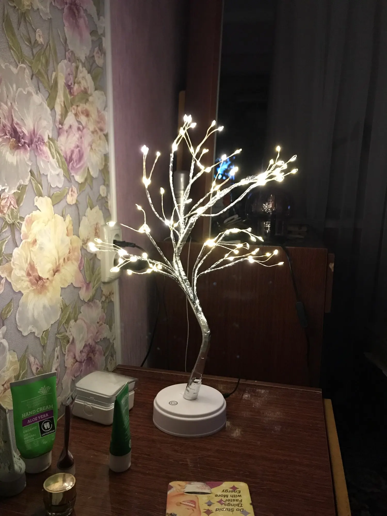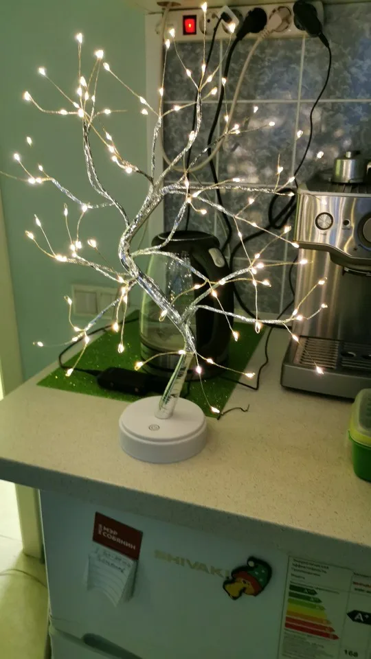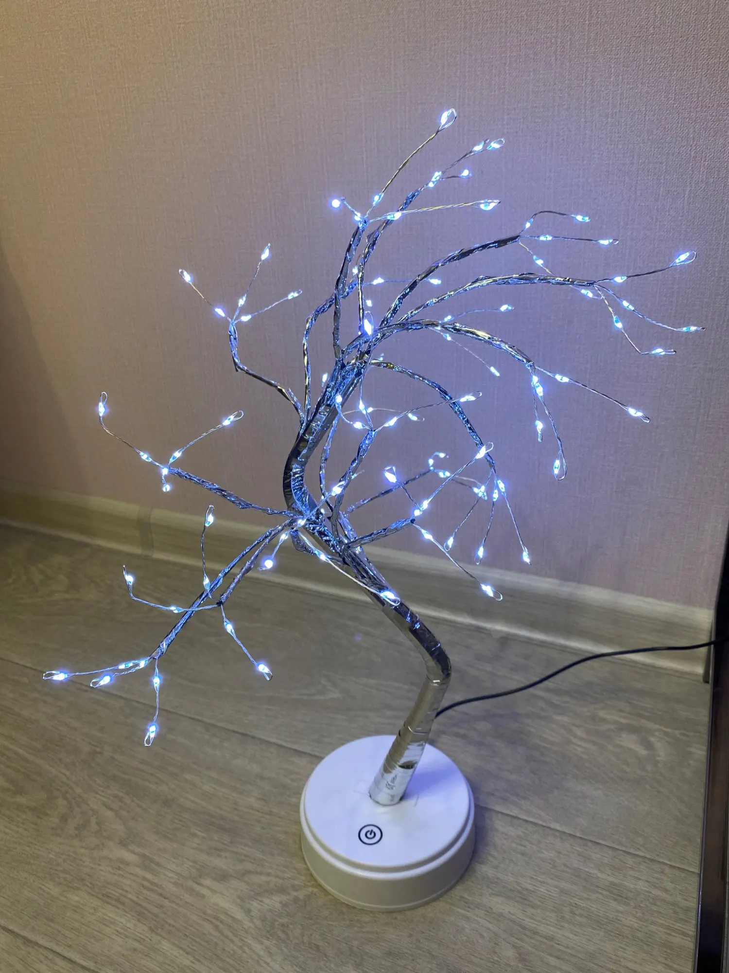 Одна из лучших моих покупок на али за все время. Супер классное дерево! Может питаться от батареек АА или от провода (идёт в комплекте, USB). Ярко светит, можно использовать как ночник или просто создать атмосферу. Само дерево покрыто хромированной плёнкой, отражает, выглядит потрясно.