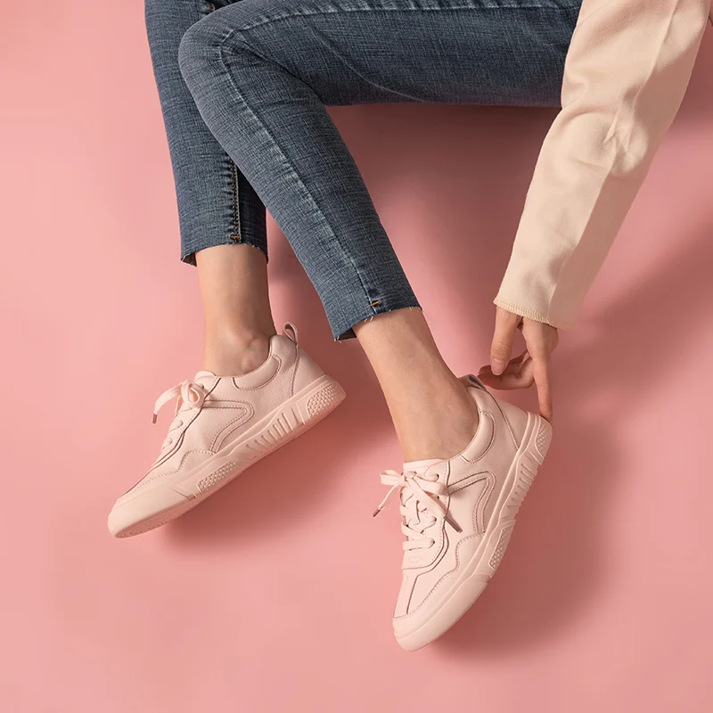 Кроссовки женские из натуральной коровьей кожи, с круглым носком, на плоской подошве