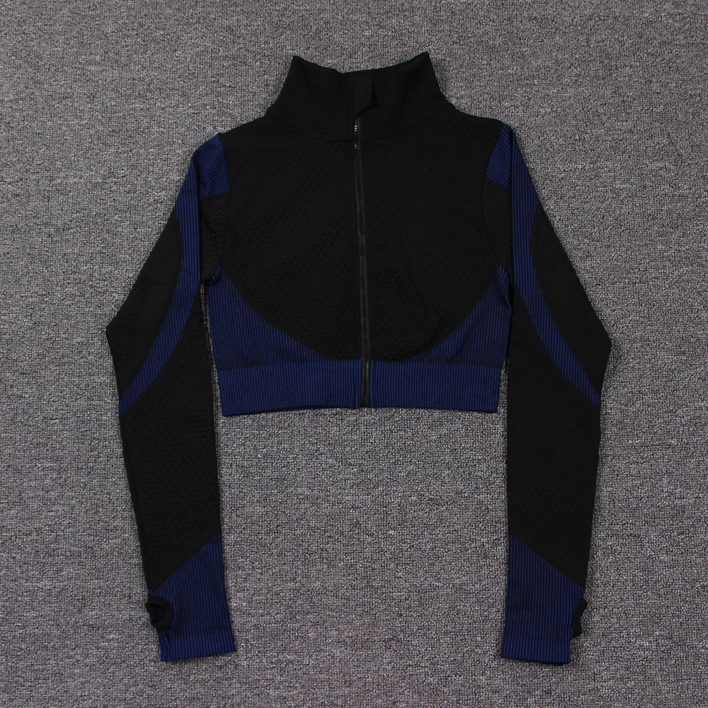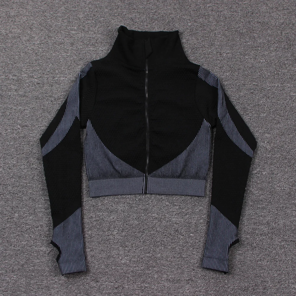 Женский спортивный комплект для фитнеса, йоги, бесшовный комплект для тренировок, одежда для бега, спортивный костюм, женская спортивная одежда для йоги на молнии с длинным рукавом