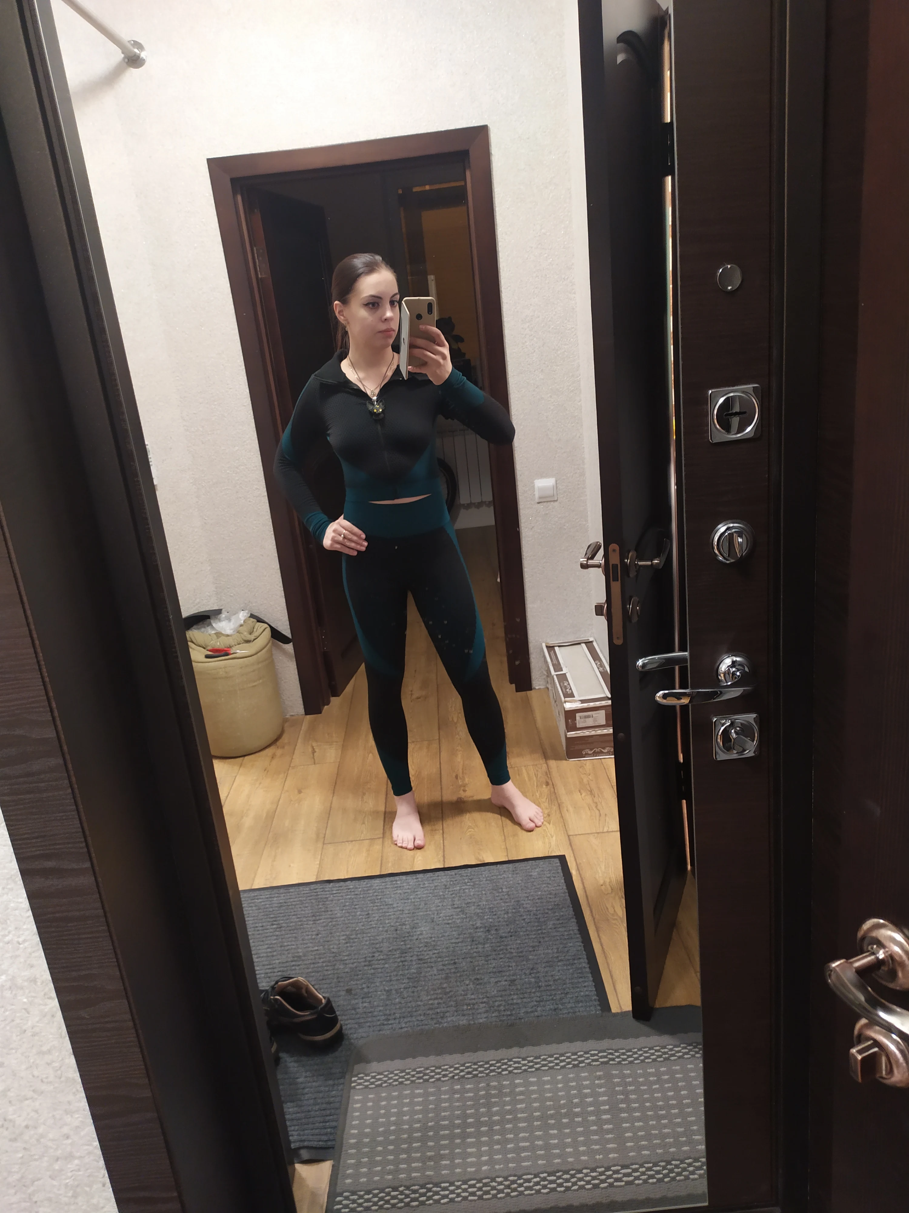 Набор соответствует описанию и фотографиям. Качество очень хорошее и чувствует себя прекрасно. Сетка высокая талия, поэтому она очень удобна для тренажерного зала, особенно. Куртка короткая, но очень удобная, как для тренировок, так и для ношения в любое время. Я попросил S, который я обычно ношу, и я был прав. Я ростом 162 см и весом 52 кг. настоятельно рекомендуется продукт. Arrived in 15 days.