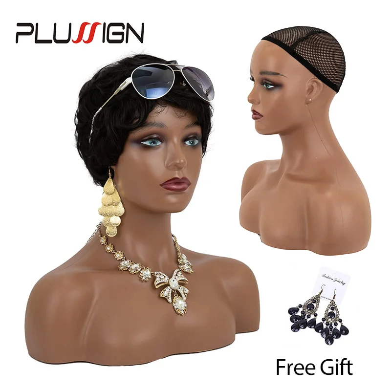 Plussign 1 шт. реалистичный полутело двойное плечо пвх обучение манекен головы для дисплея парики на шляпы ювелирные изделия 3 цвета в наличии