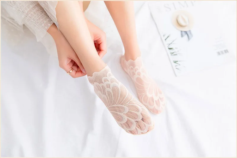 Чудесные летние ультратонкие носки, прозрачные шелковые кружевные носки со стразами, эластичные короткие носки для девочек, женские носки, сетчатые носки, 5 пар