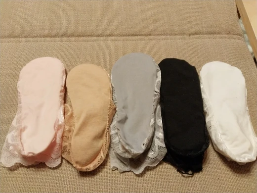 Приятные, красивые, удобные носочки. На подошве какая-то мягкая ткань. Брала комплект из 5 штук. Очень странно все с размером- три пары были на 35-36, одна на 37 и серые аж на размер 39-40. Пришлось их отдать подруге, потому что они не держатся на ноге, если не натянуты впритык. На одних был небольшой брак- недошит шов до конца, и почти на всех необрезанные нитки шва. Стоимость одной пары с браком продавец возместил.