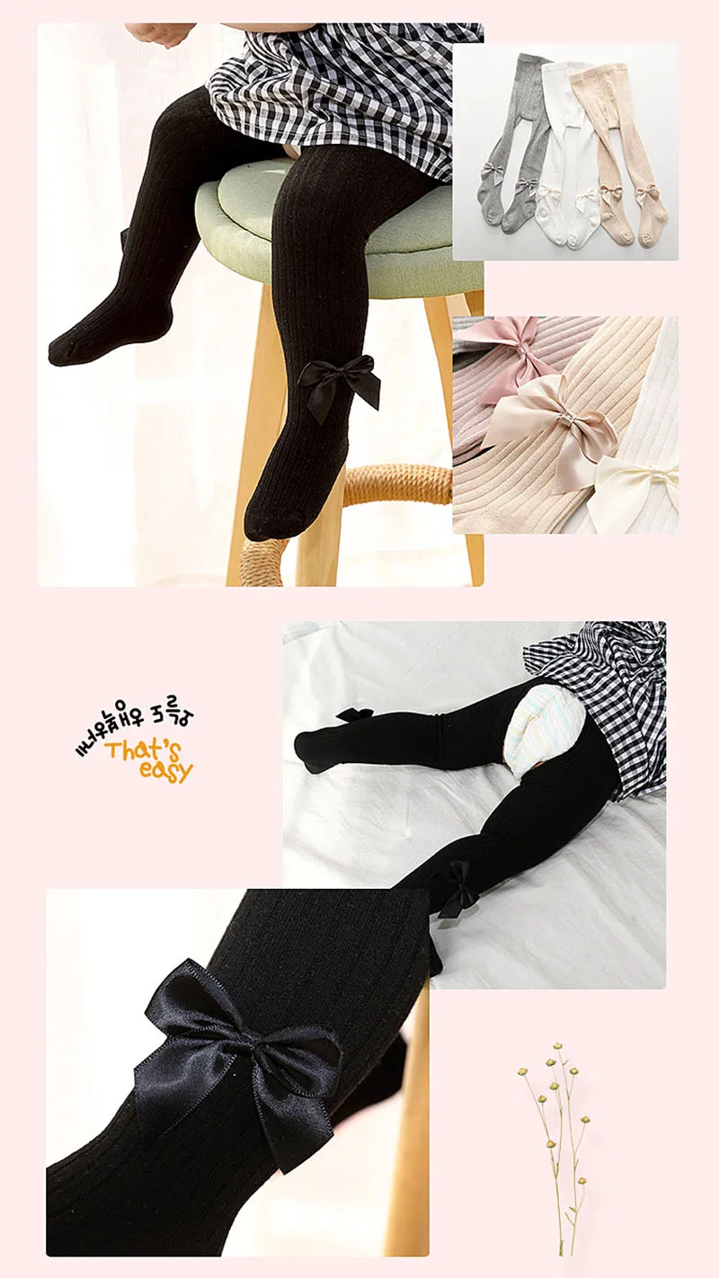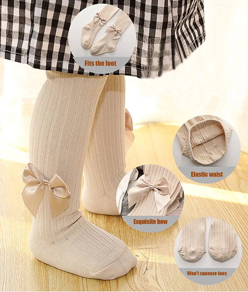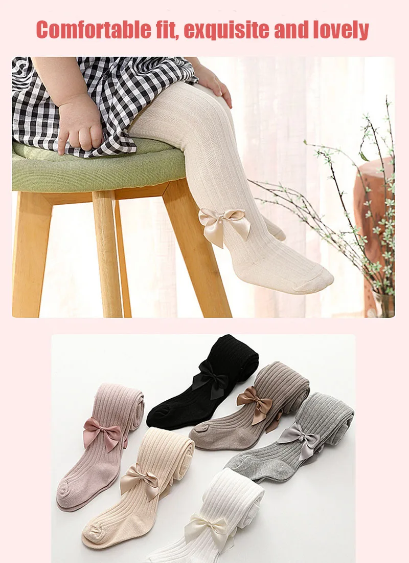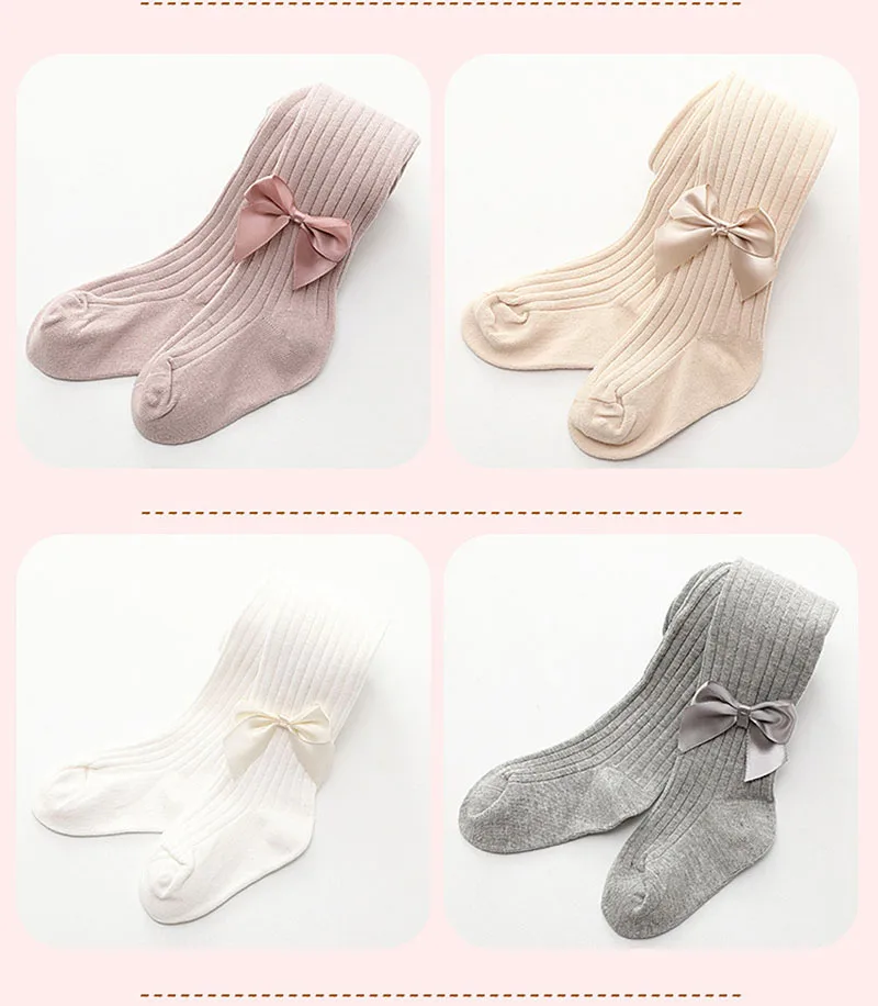 Хлопковые колготки для девочек; Мягкие дышащие детские колготки с бантом; Милые однотонные вязаные детские чулки; Подходит для детей от 2 до 9 лет колготки для девочки колготки для девочек колготки для малышей