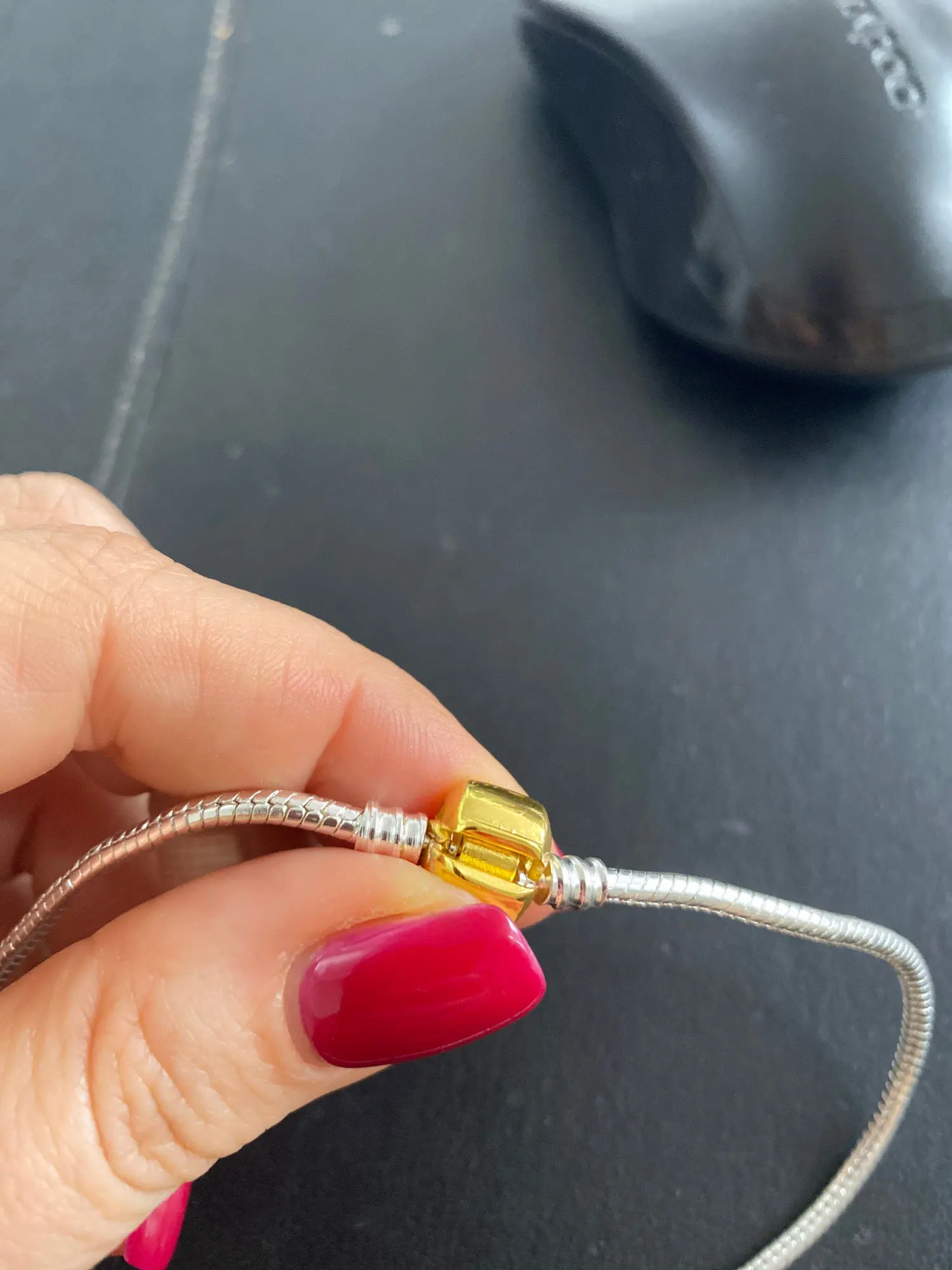 За свои деньги неплохой товар, на Пандору совсем не похоже, если кто-то хочет сэкономить, купив эквивалент) цвет очень яркий из-за этого смотрится дёшево, на мой взгляд, двух креплений как на картинке у товара нет, если только приобретаете дополнительно