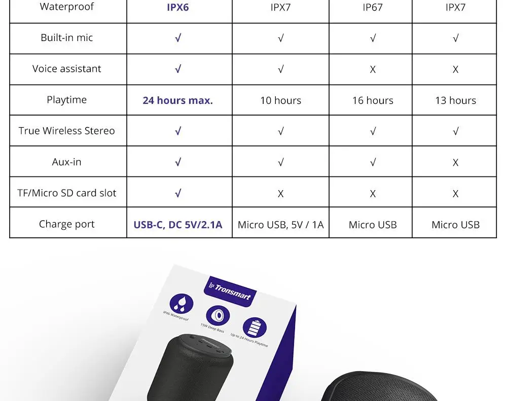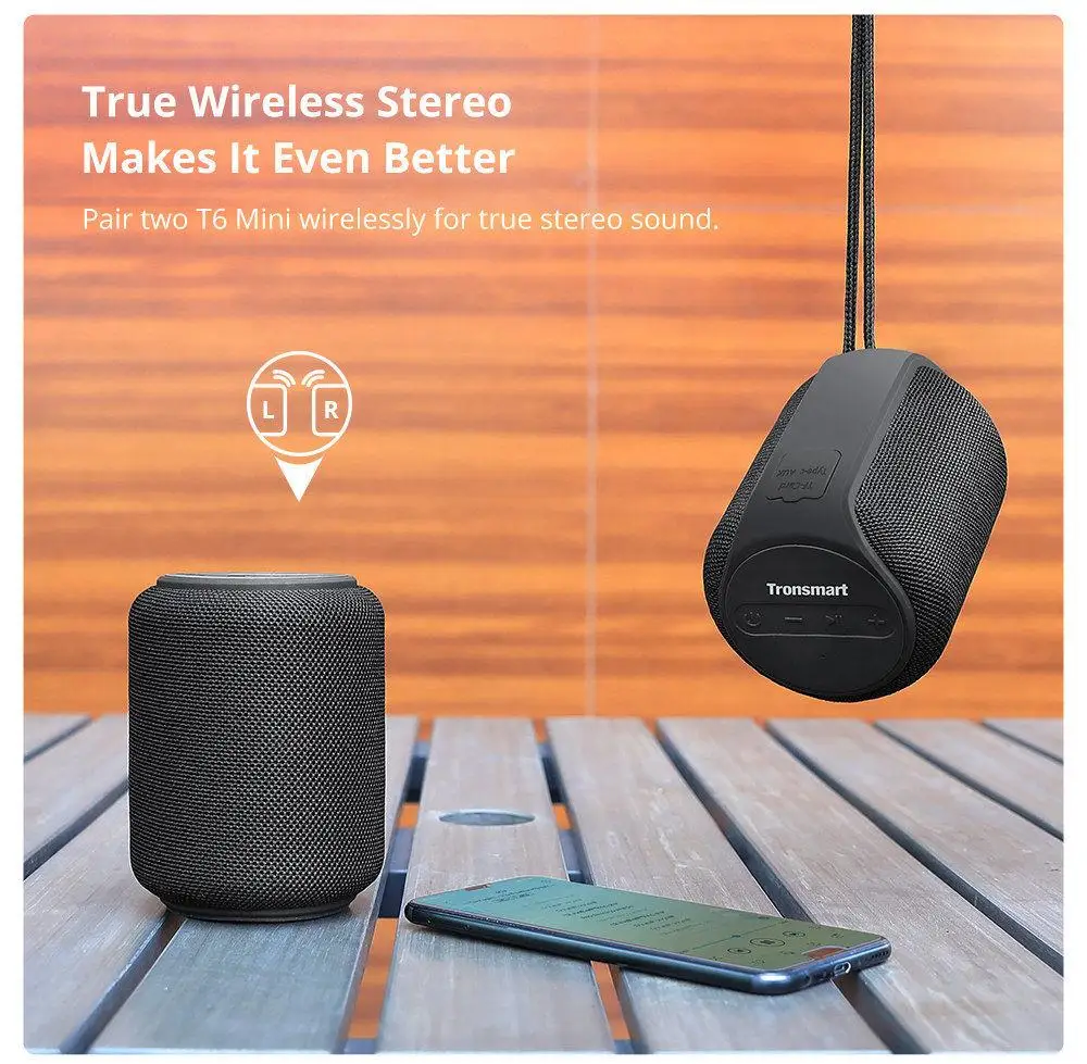 Bluetooth-динамик Tronsmart T6 Mini, 360 градусов, глубокие басы, водонепроницаемость IPX6, время воспроизведения 24 часа