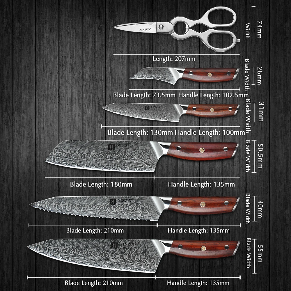 Набор кухонных ножей XINZUO из дамасской стали, 7 шт.
