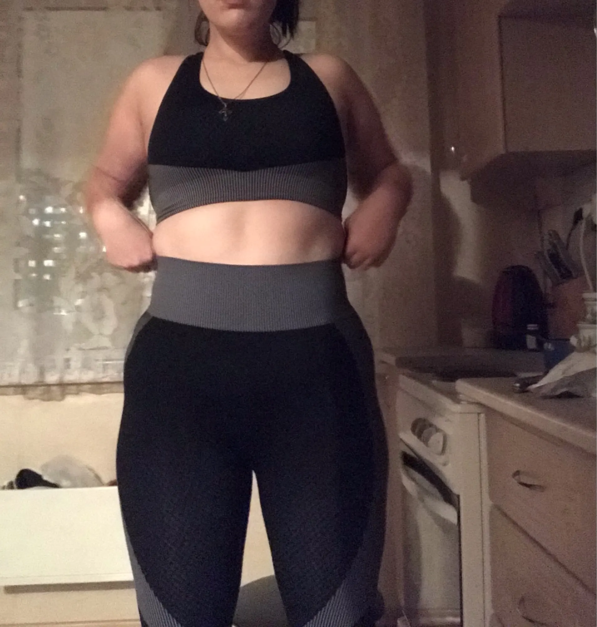 Товар пришёл хороший. Только топ чуть светлее. Мои параметры ог90, от80, об103. Рост 157. Сидит отлично, на талии широкая резиночка но я б не сказала что она сильно утягивает. Длина низа на мои коротенькие ножки подошла.