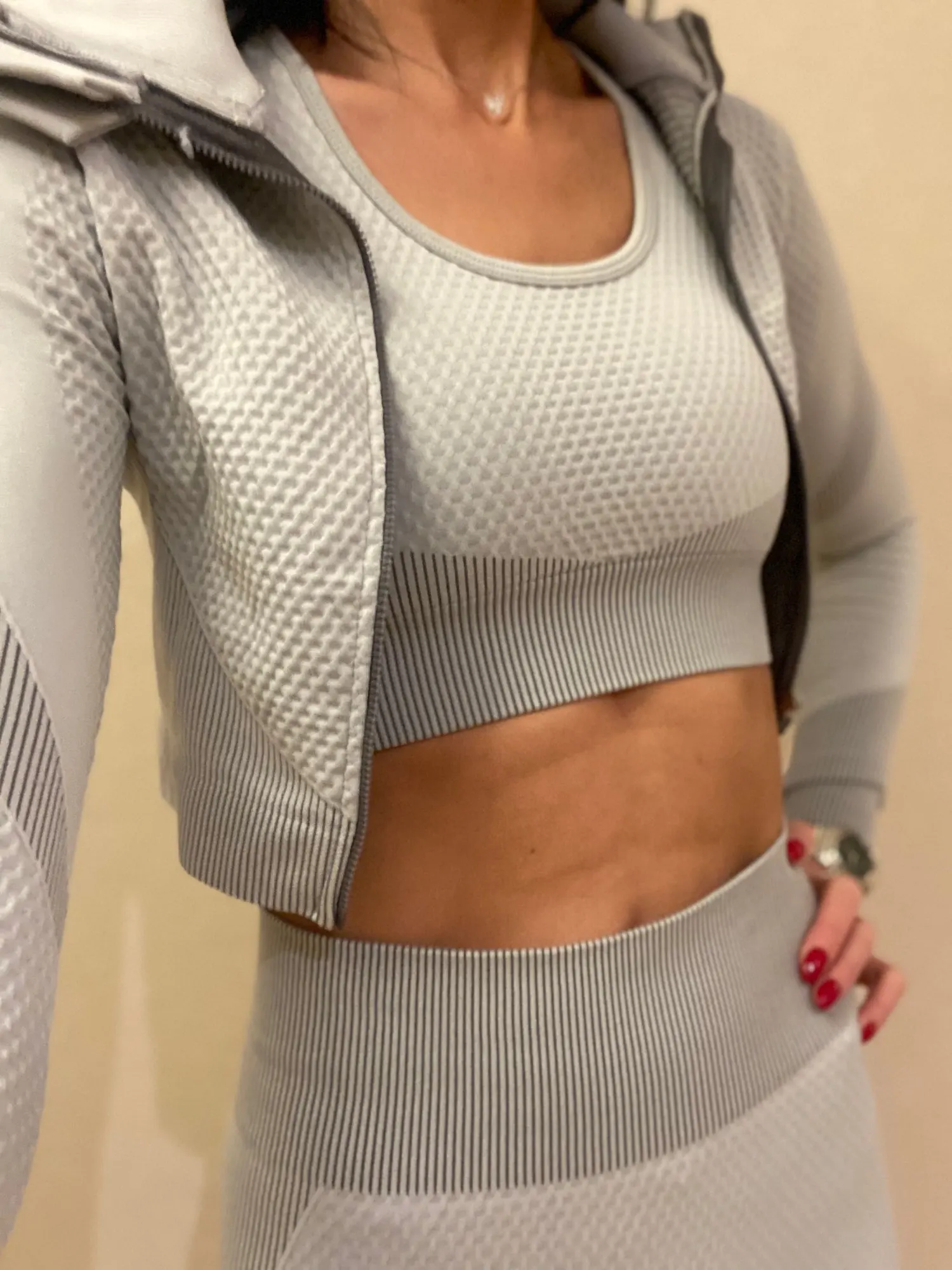 Костюм шикарный. Штанишки подошли идеально, что меня очень обрадовало, обычно в талии приходится вставлять резинку, что бы не сваливалось. Топ налез впритык. Рукава у кофты именно той длины, которая мне нужна. Я в восторге. Рекомендую.