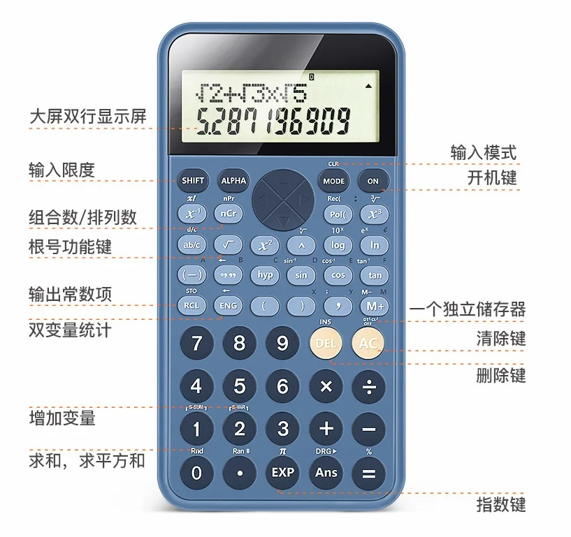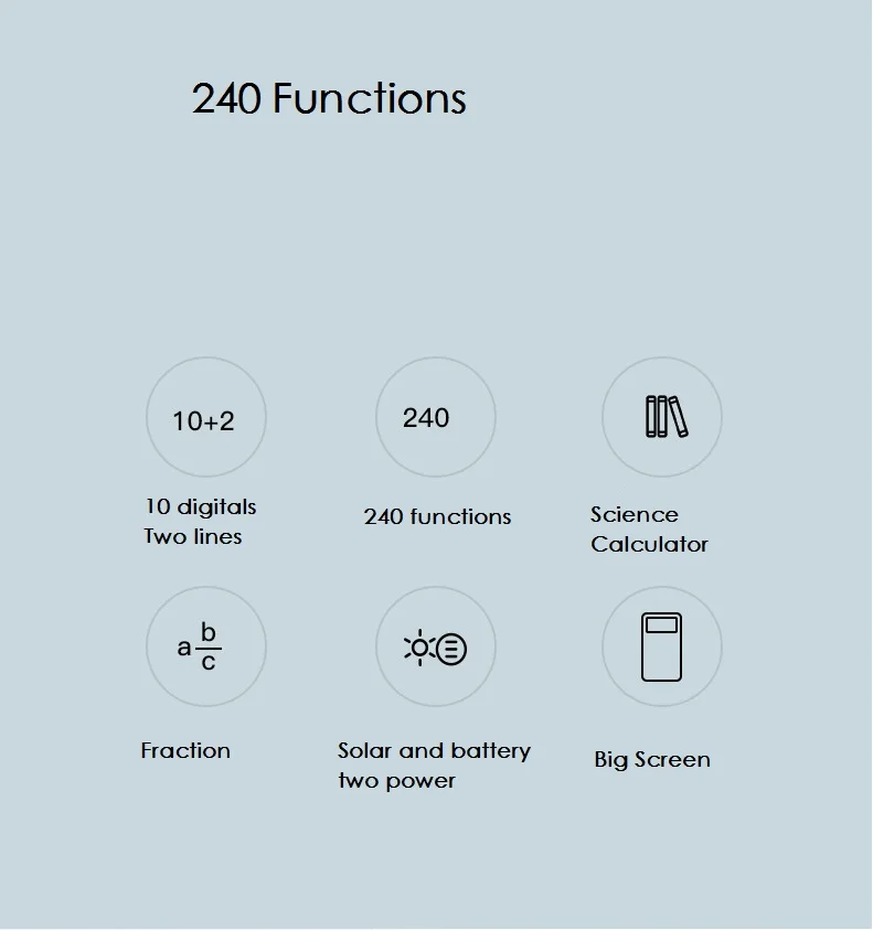 Калькулятор с большим экраном, 240 функций, солнечная батарея и батарея