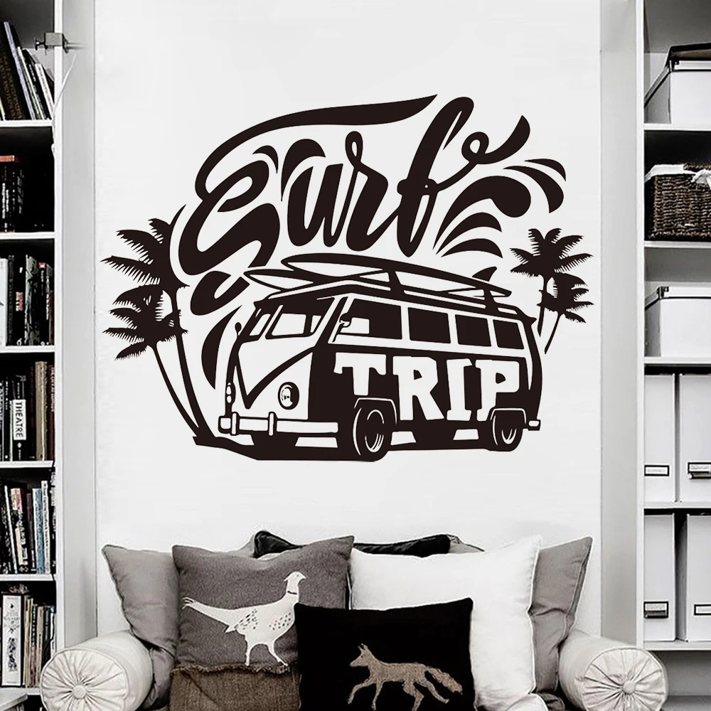 Автомобильные наклейки на стену Volkswagen для серфинга, поездки, хиппи, автомобильные наклейки на стену, пальма, пляж, серфинга, виниловые домашние украшения, роспись X881