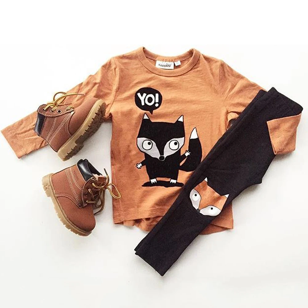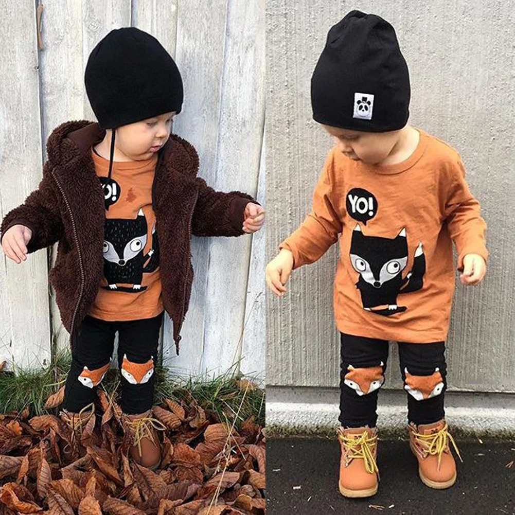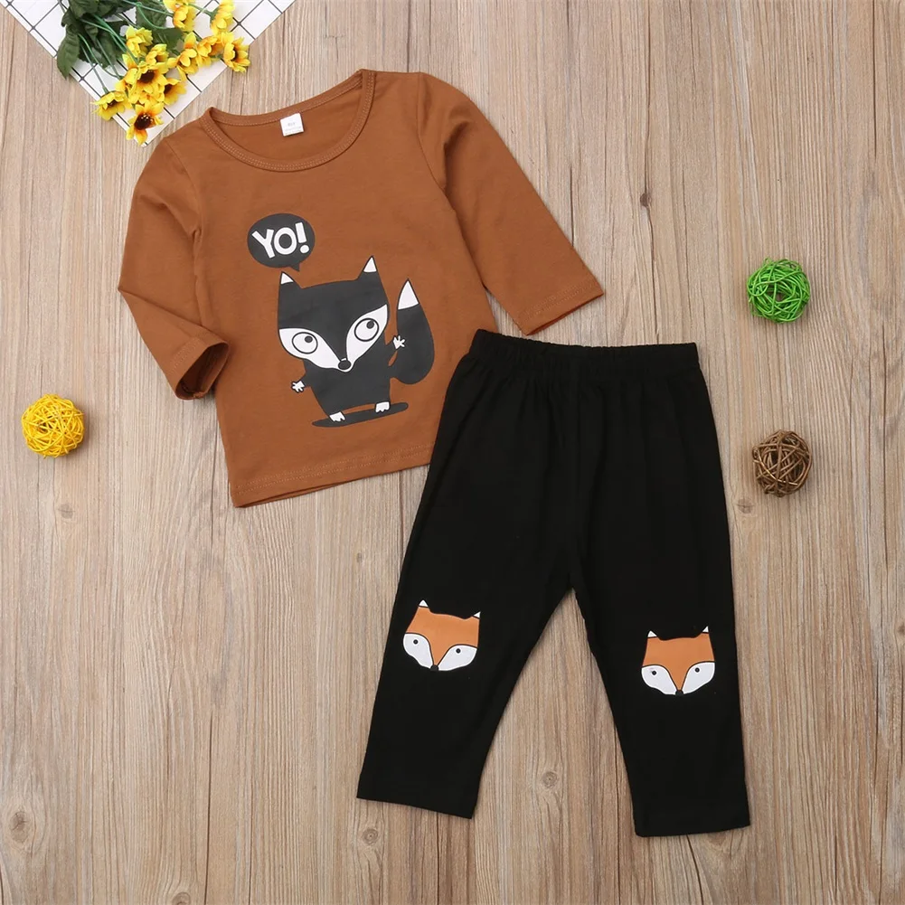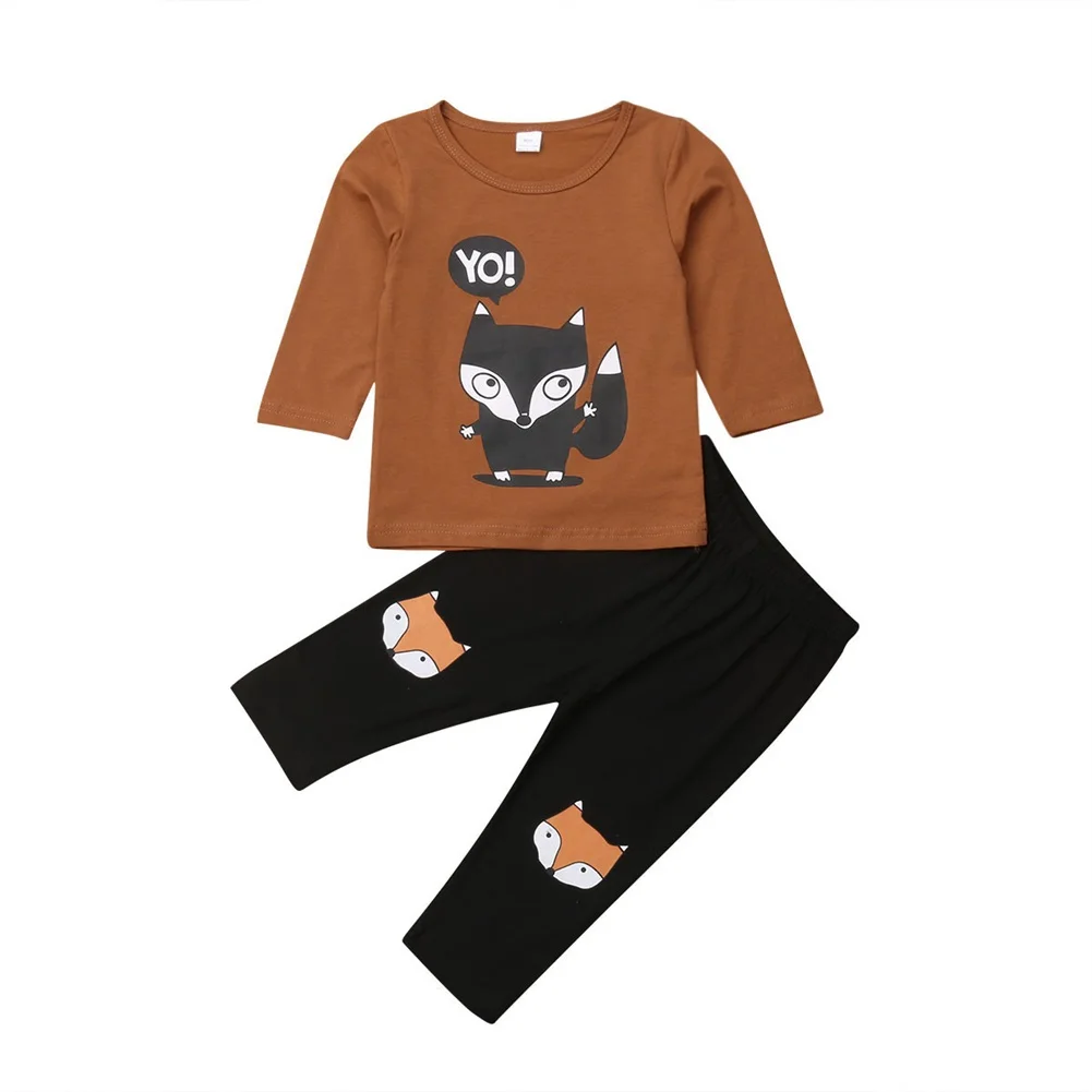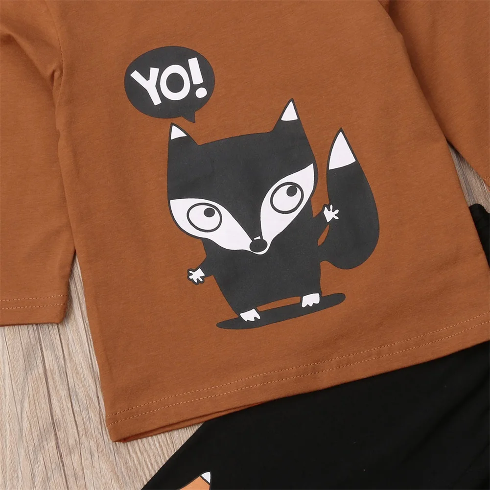 Для малышей, для маленьких мальчиков йо лиса топы с длинными рукавами, комплект со штанами и футболкой, комплект одежды