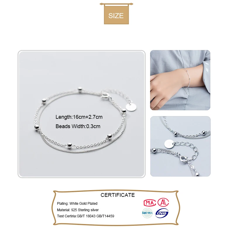 Серебро 925 пробы с двухслойными бусинами, браслет-ножной браслет для женщин, свадебные серебряные ювелирные изделия 925 DS2411