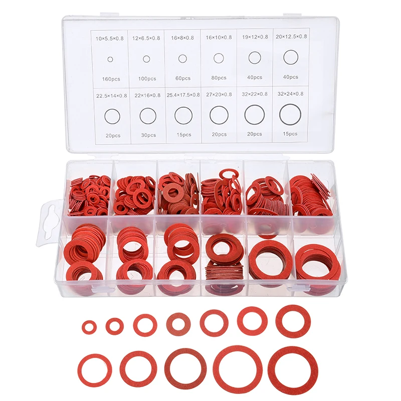 Набор плоских шайб 12 размеров из красного стального бумажного волокна, изоляционная шайба, прокладка, набор гаек и болтов, набор Плоских кольцевых уплотнений, 600 шт.