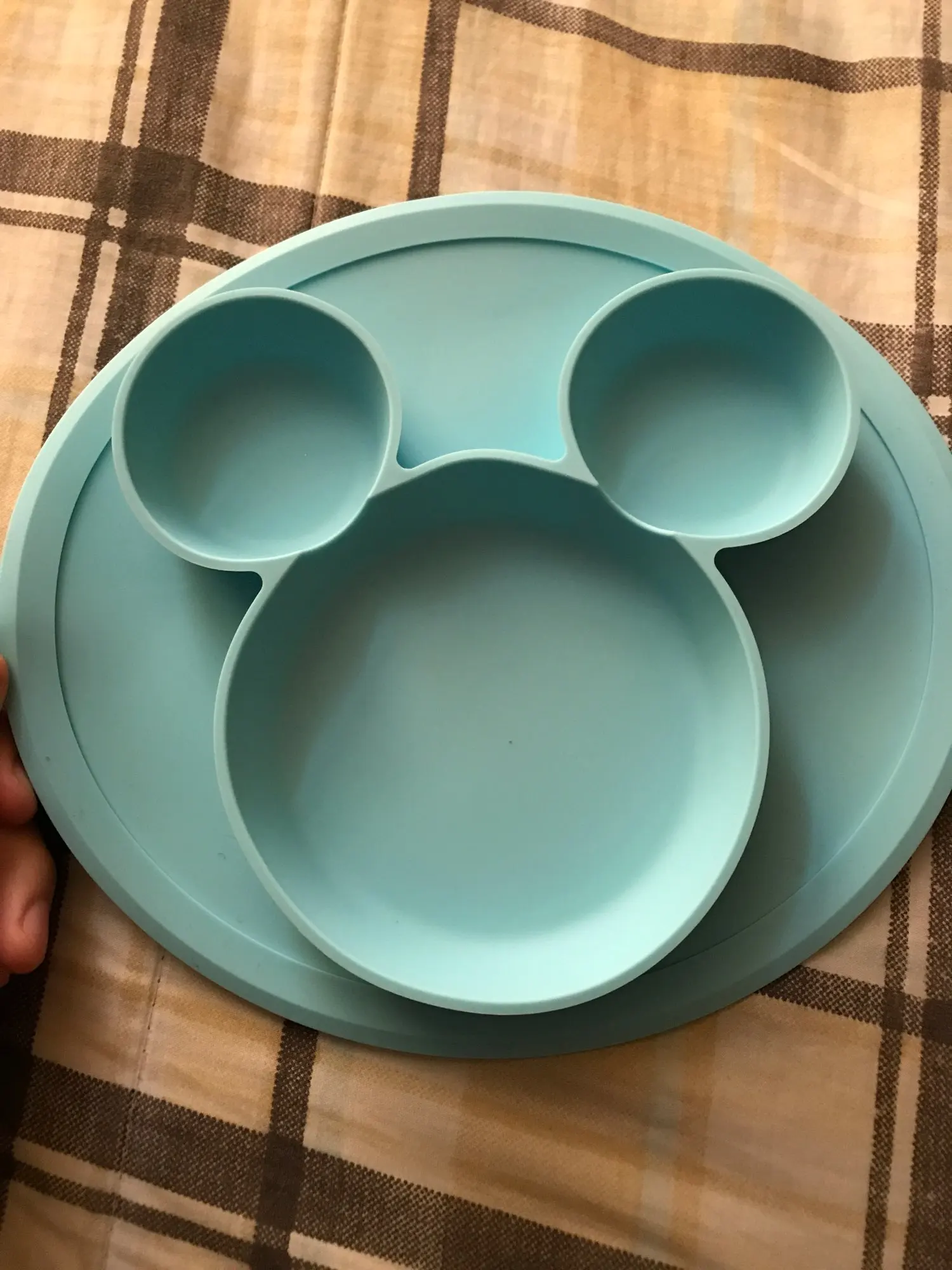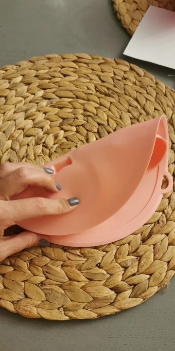 Он немного маленький, но хорошего качества, его можно мыть в посудомоечной машине, он хорошо прилипает и не двигается, что позволяет легко принимать продукты.