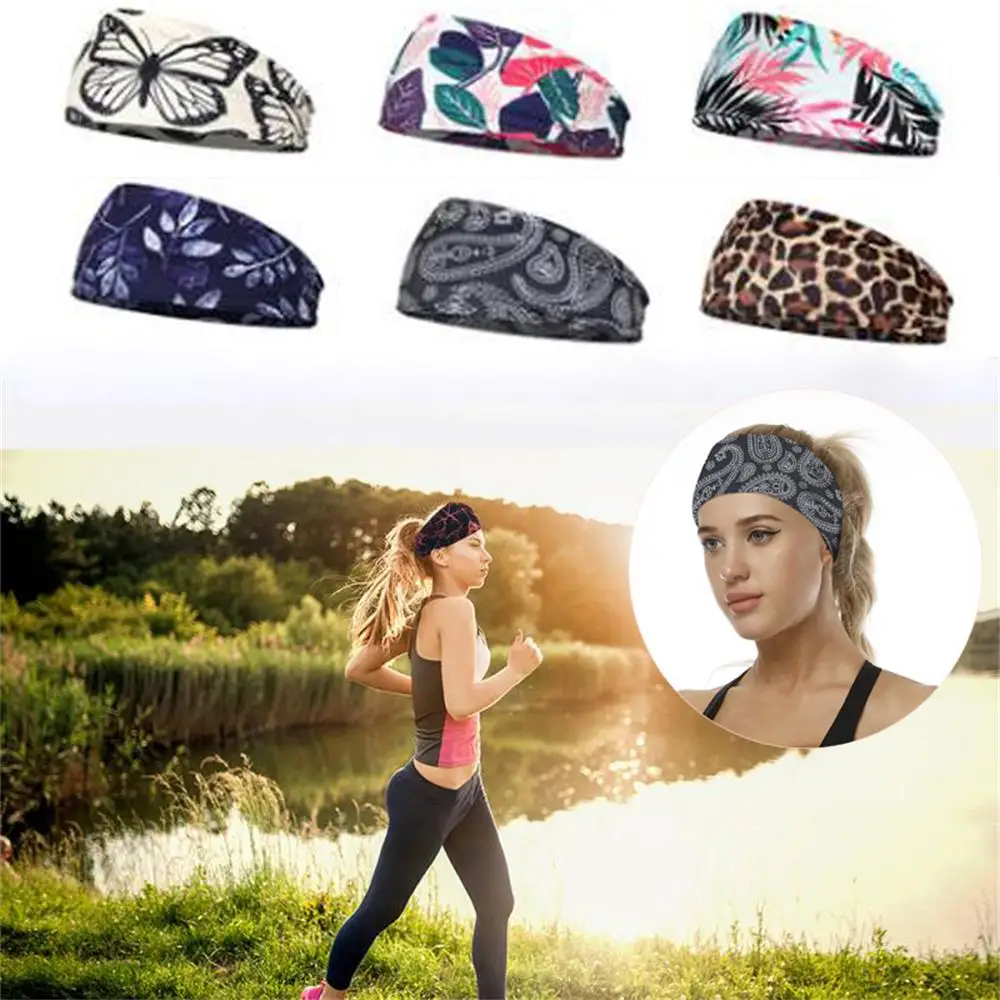 Эластичная повязка для волос с принтом для йоги, модная спортивная повязка на голову, нескользящая Тонкая Повязка для фитнеса, повязка от пота, тюрбан