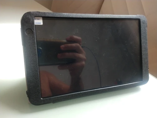 Планшет влез. Немного неровно прорезь для камеры. Доставка месяц до постомата
