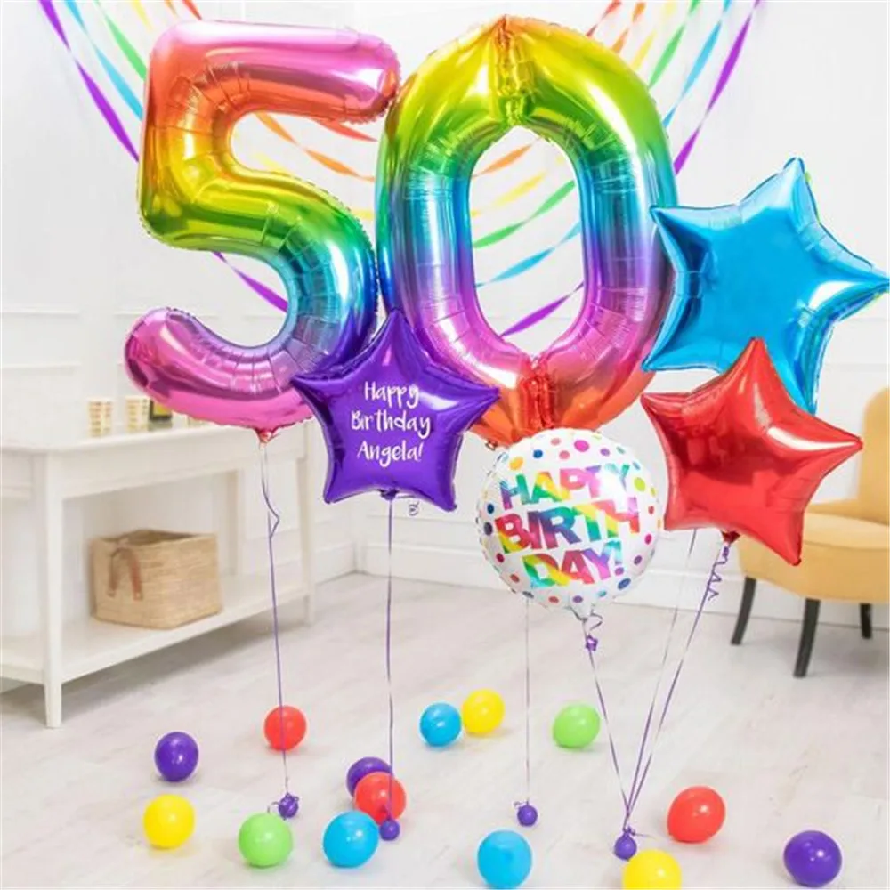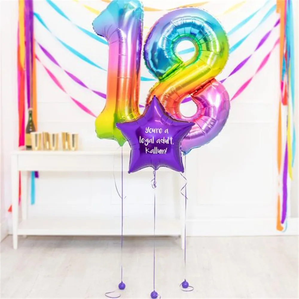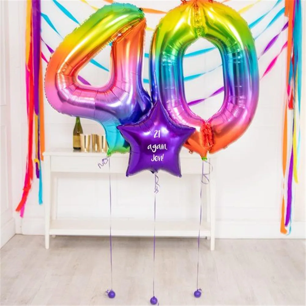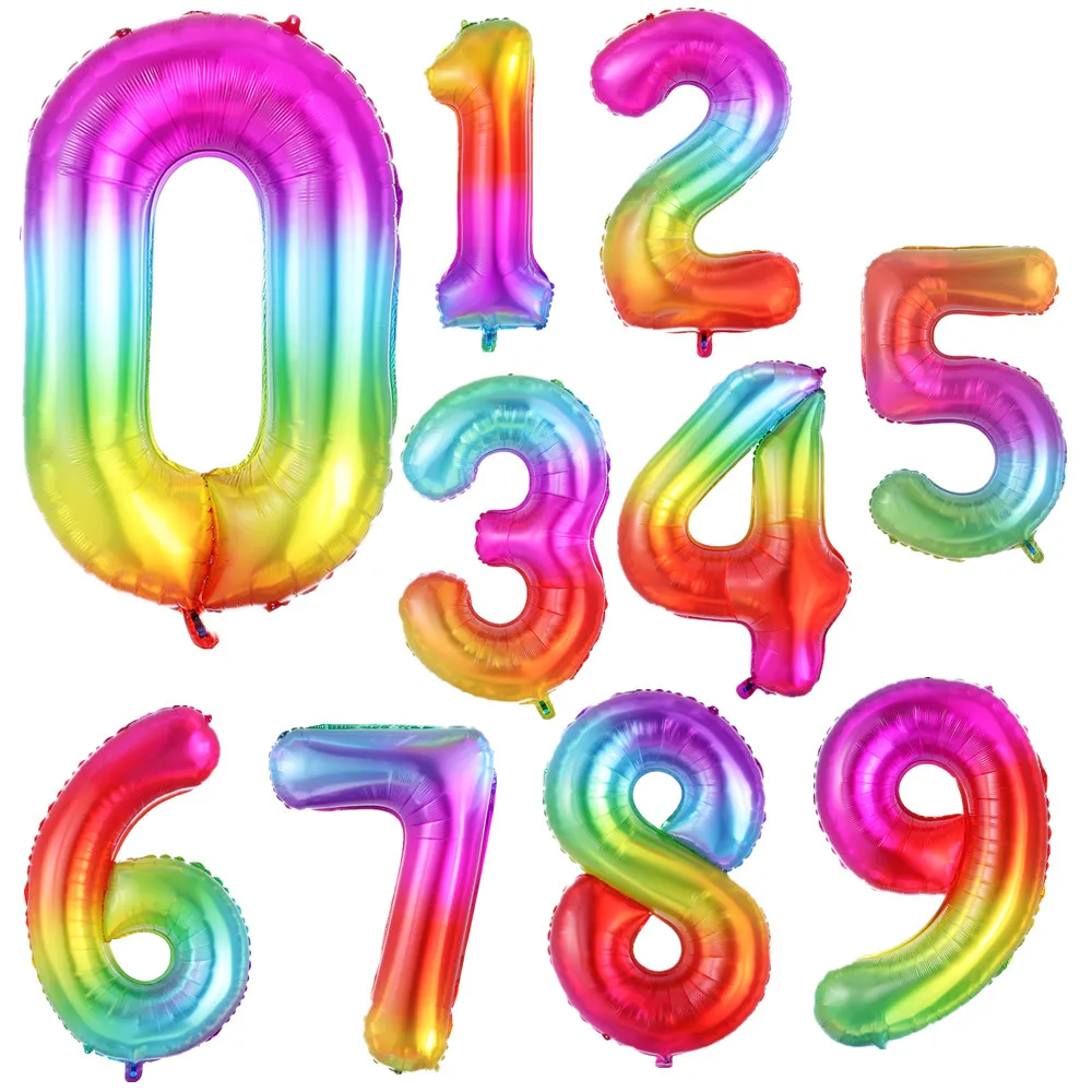 Гигантские 40 дюймов радужные цифры, фольгированные воздушные шары, большие фотообои, свадебные украшения, товары для дня рождения, детский душ