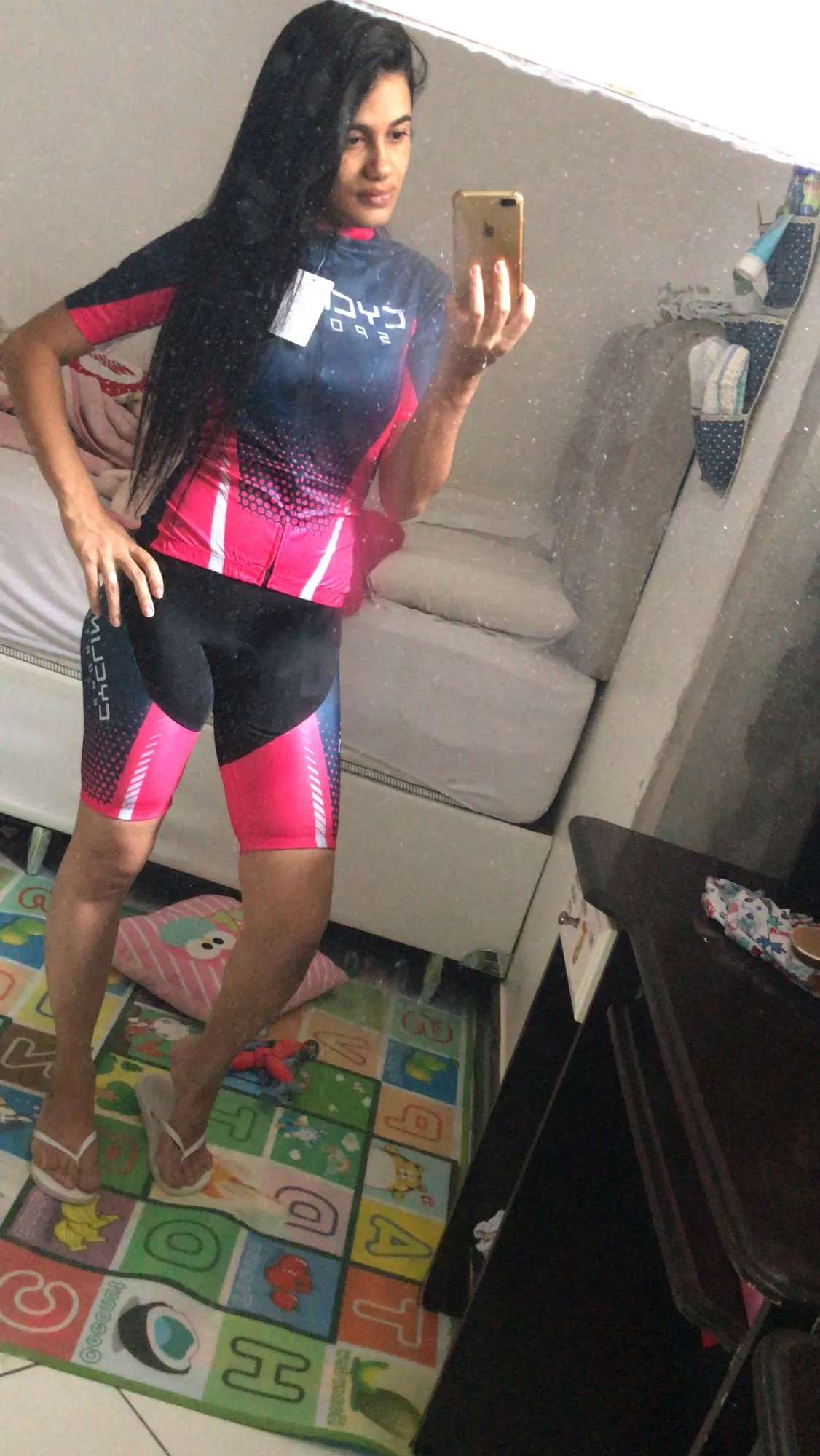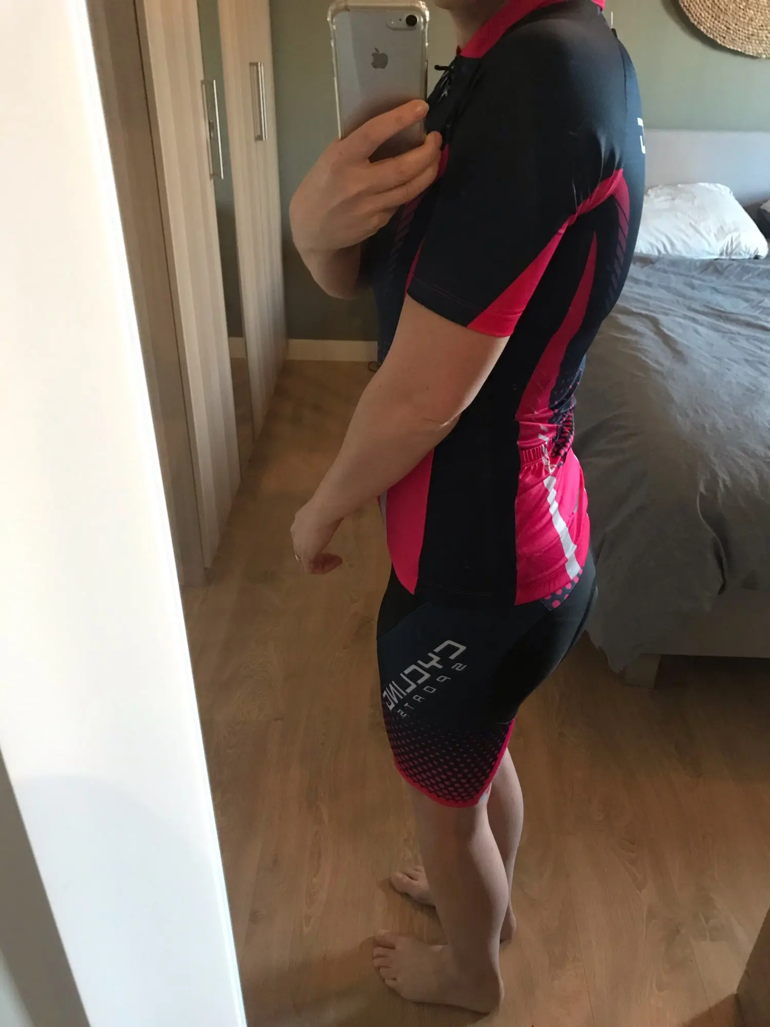 Этот комплект красивый! Цвета такие яркие, как на фотографиях. Я еще не ездил в нем. Я 5,4 рост и 148lbs. Я купил XL, и он хорошо сидит. Шорты на лямках немного свободные, но не достаточно, чтобы беспокоить во время езды. Настоятельно рекомендую его.